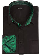 Cette chemise homme noire et vert foncé à col boutonné et motif cachemire est composée à 60 % de polyester et à 40 % de coton. Son motif patchwork lui confère une touche unique. Cette chemise à manches longues est doublée d'un motif cachemire vert foncé. Ce motif brillant et tridimensionnel attire tous les regards. Le tissu est confortable et indéformable. Cette technologie innovante offre de nombreux avantages. Respirante par temps chaud, elle évacue également l'humidité, évitant ainsi la transpiration des aisselles. Son tissu mélangé unique est infroissable et très facile d'entretien.