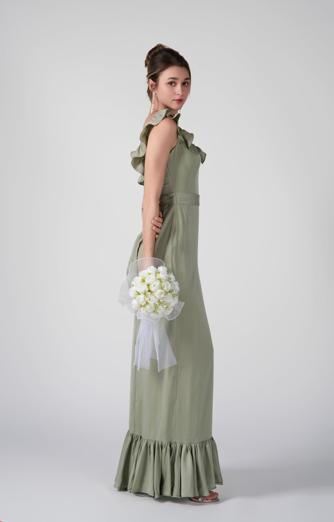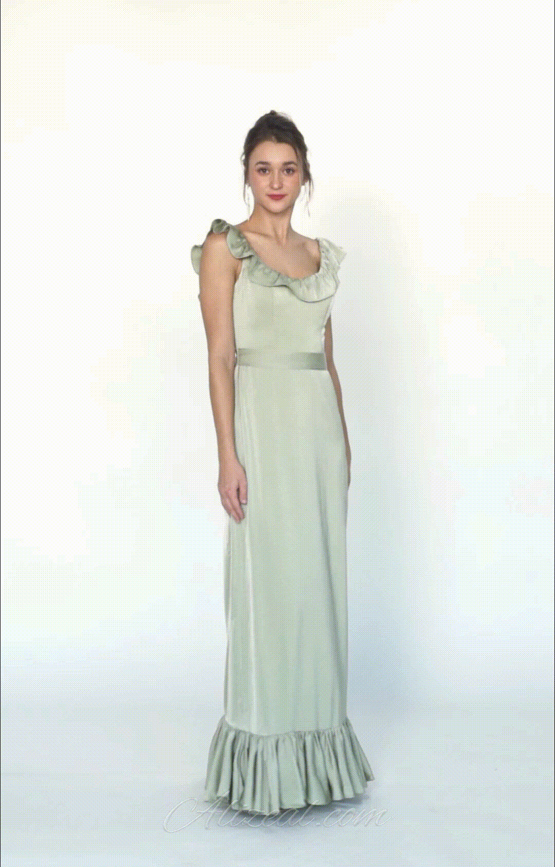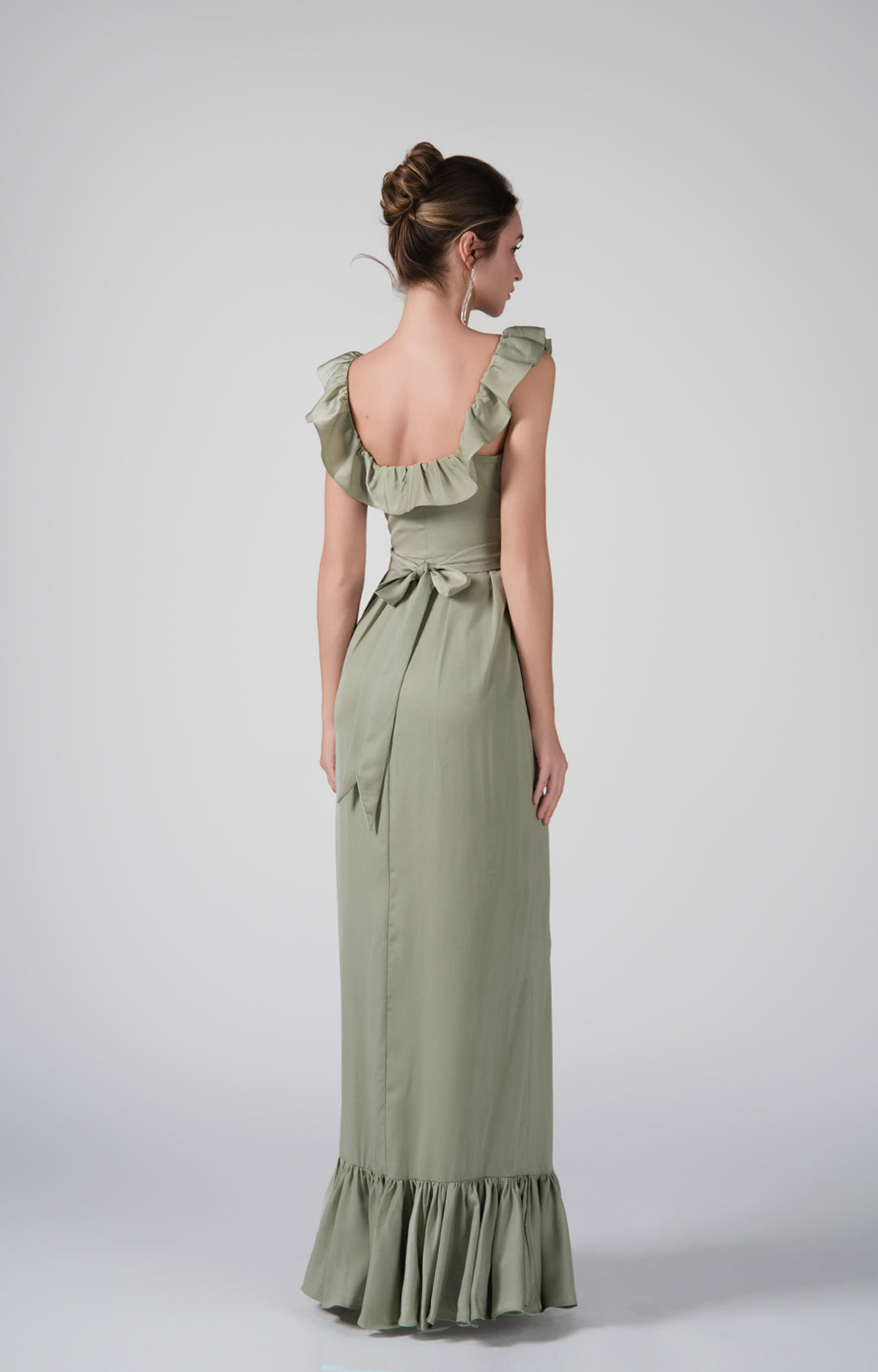 This matte acetate dress is perfect for evening events, formal parties, weddings, or any occasion that requires a graceful and sophisticated look. Its romantic design and elegant details make it a perfect choice for making a statement of style and elegance.