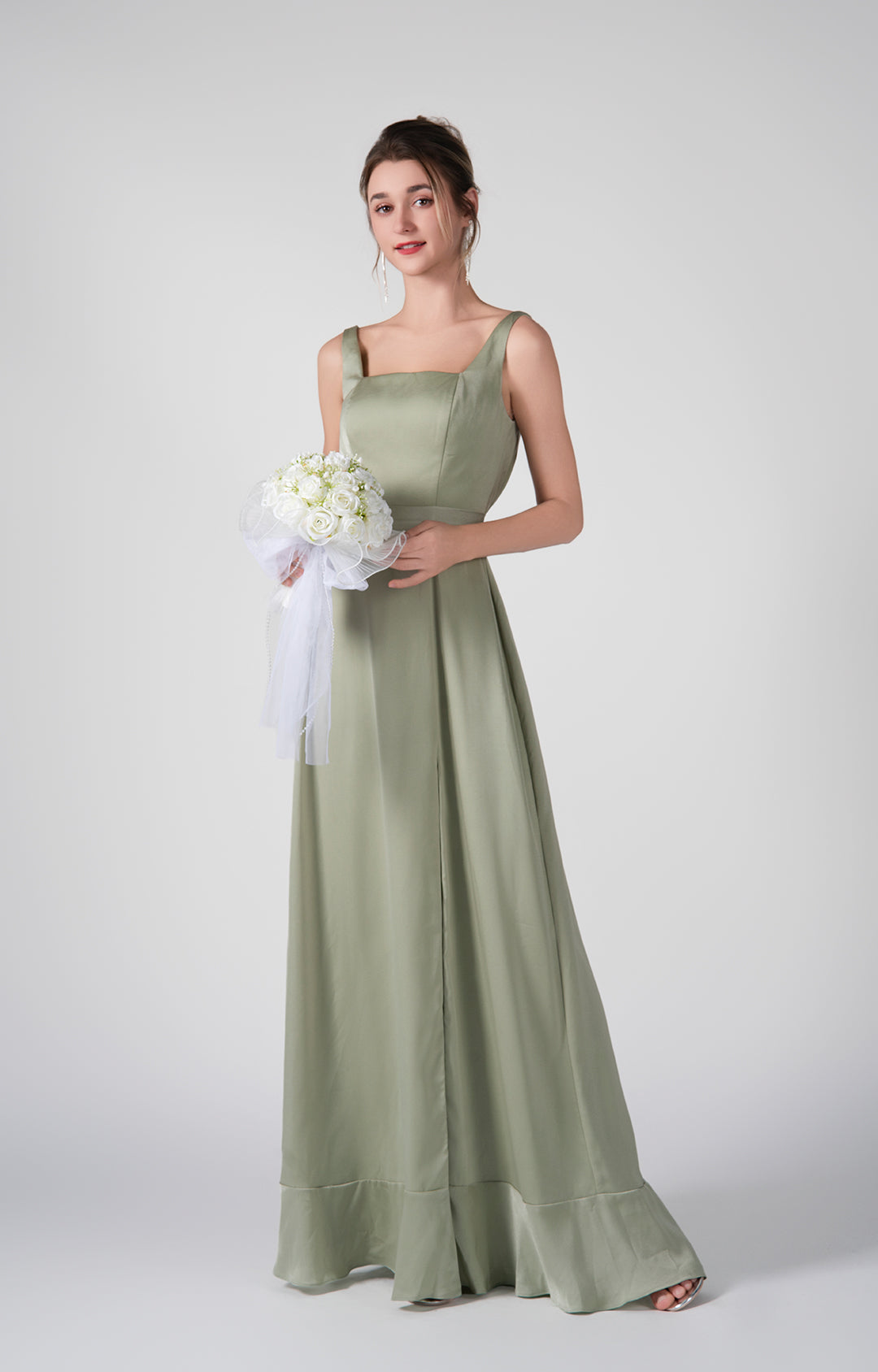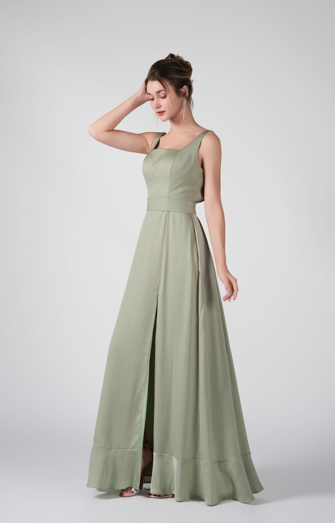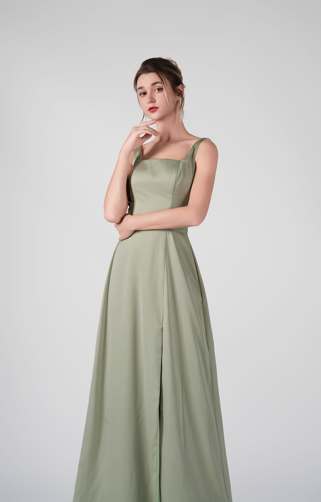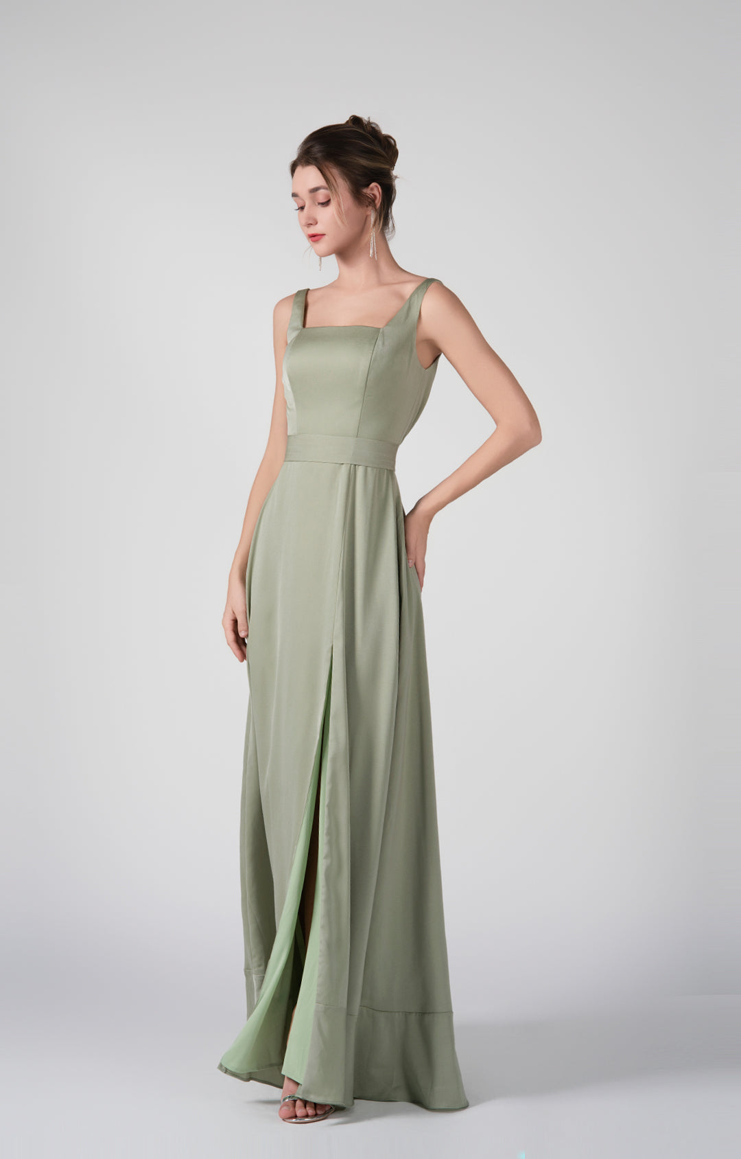 Square-Neck Wide Straps Side Slit A-Line Dresses