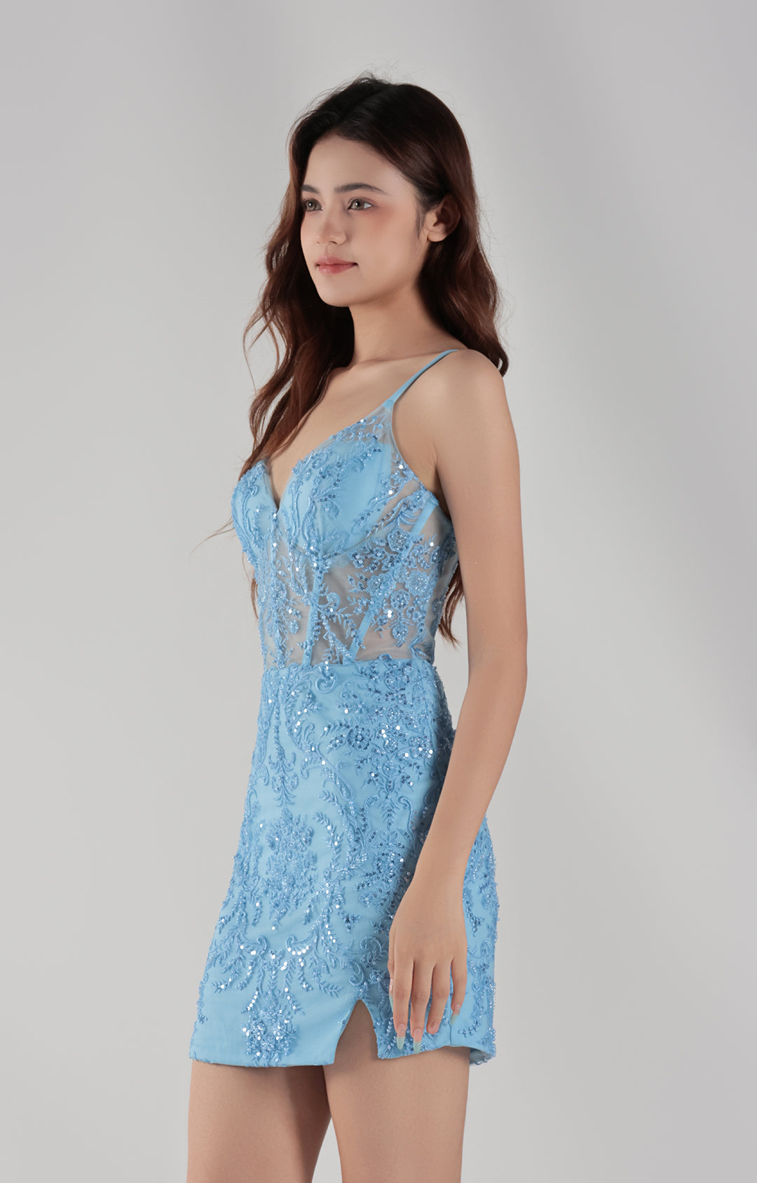 This stunning dress is ideal for special occasions such as evening galas, cocktail parties, or a night out.