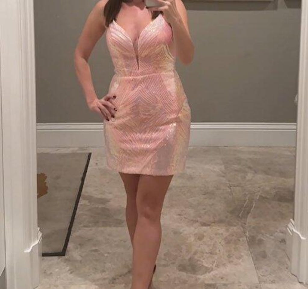 V-neck Sequin Spaghetti Straps Lace-up Back Mini Cocktail Dress