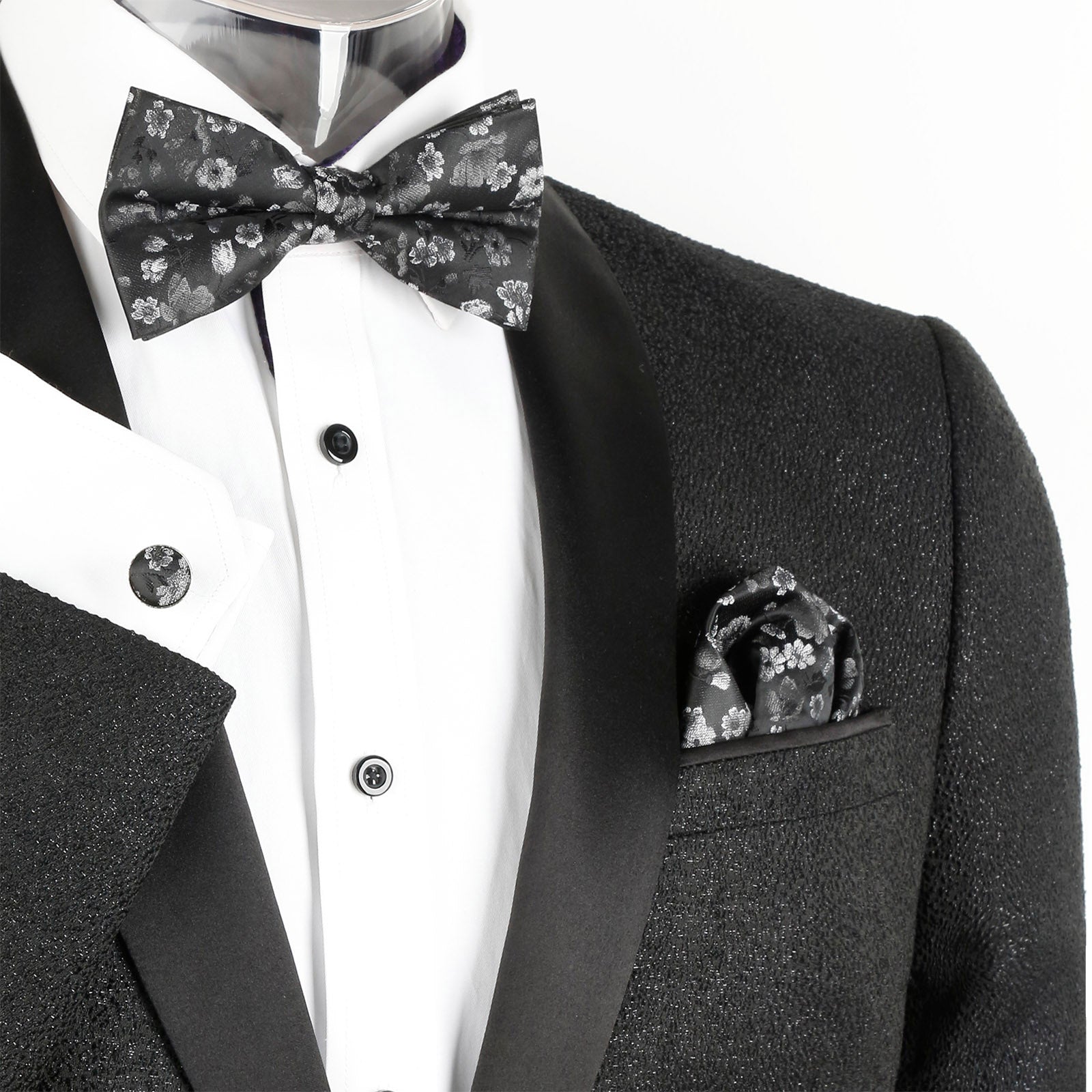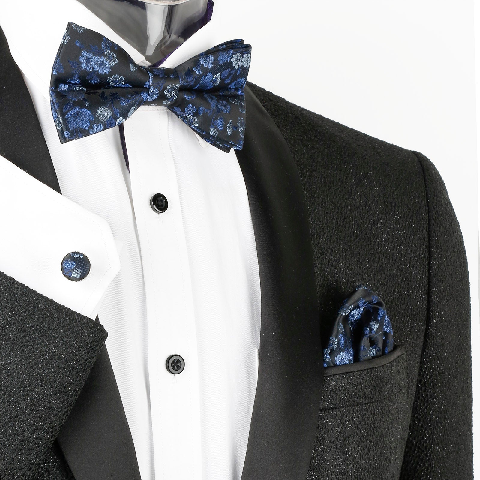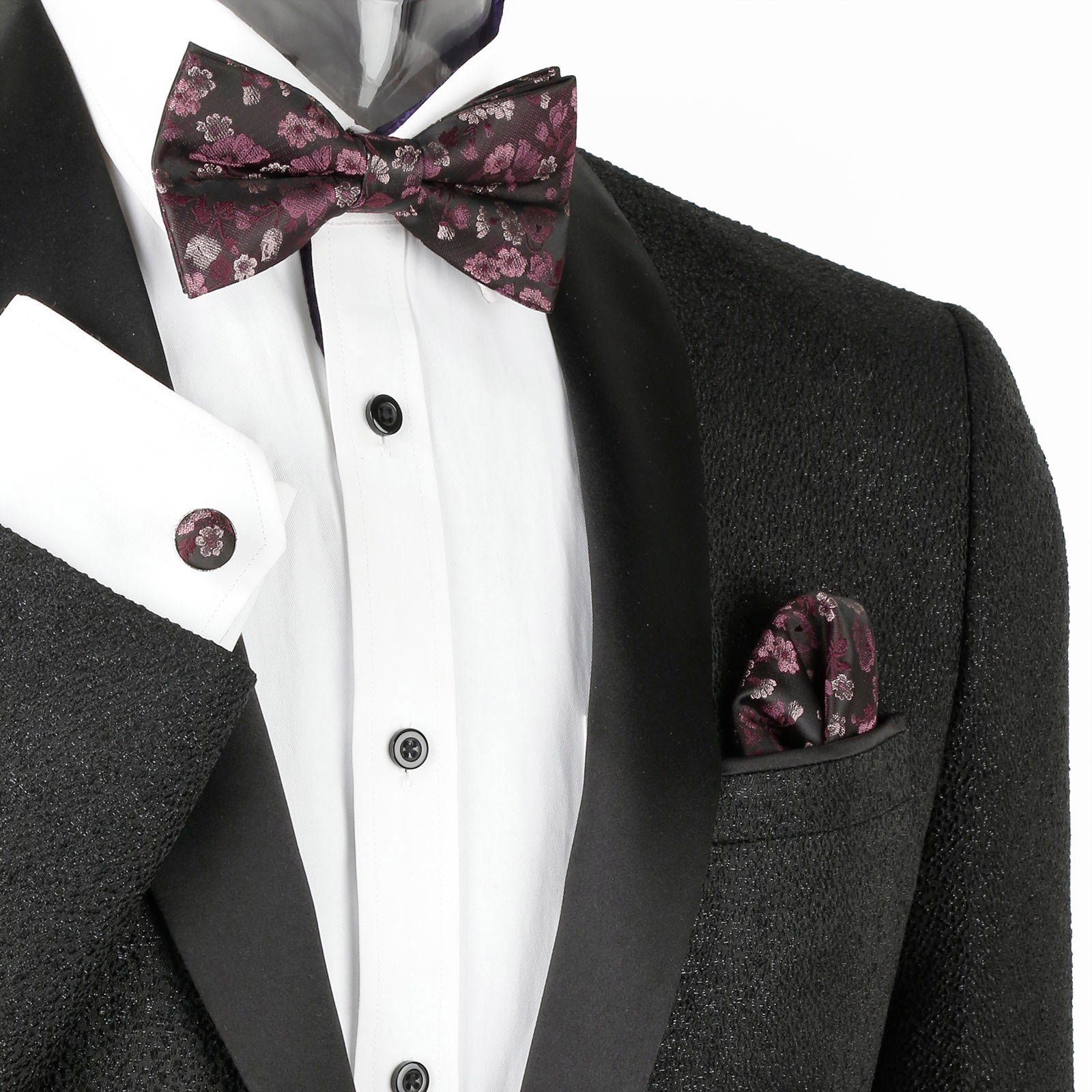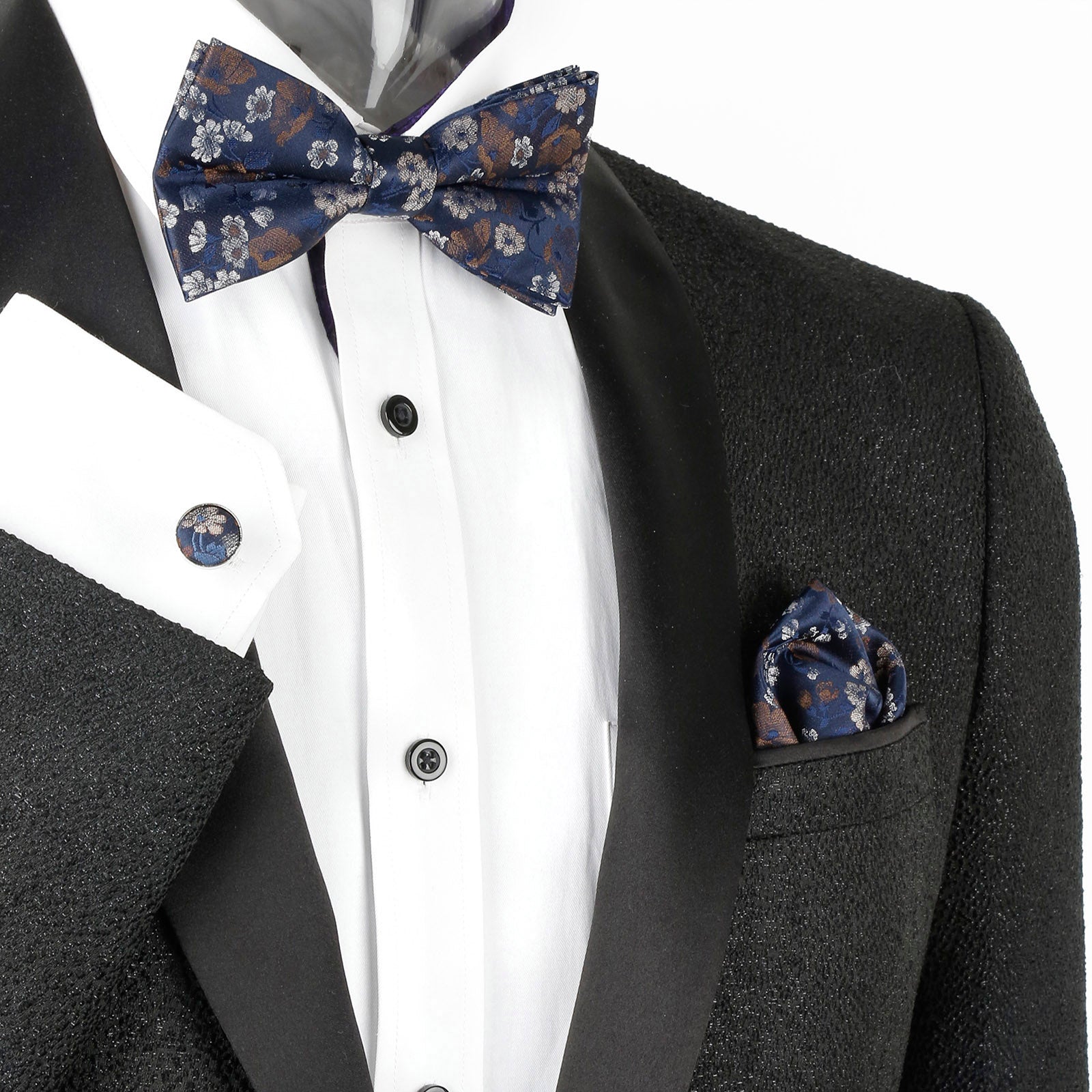 Mens Pre-tied Floral Woven Bow Tie, Handkerchief, Cufflinks Set-006