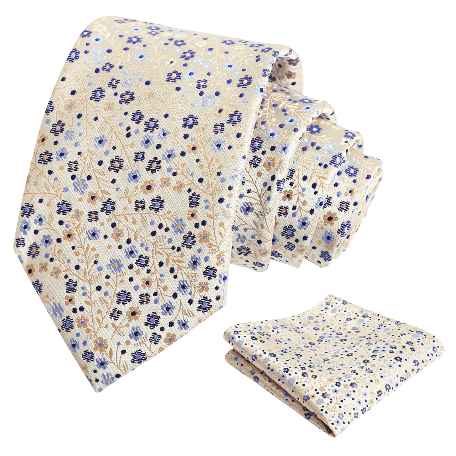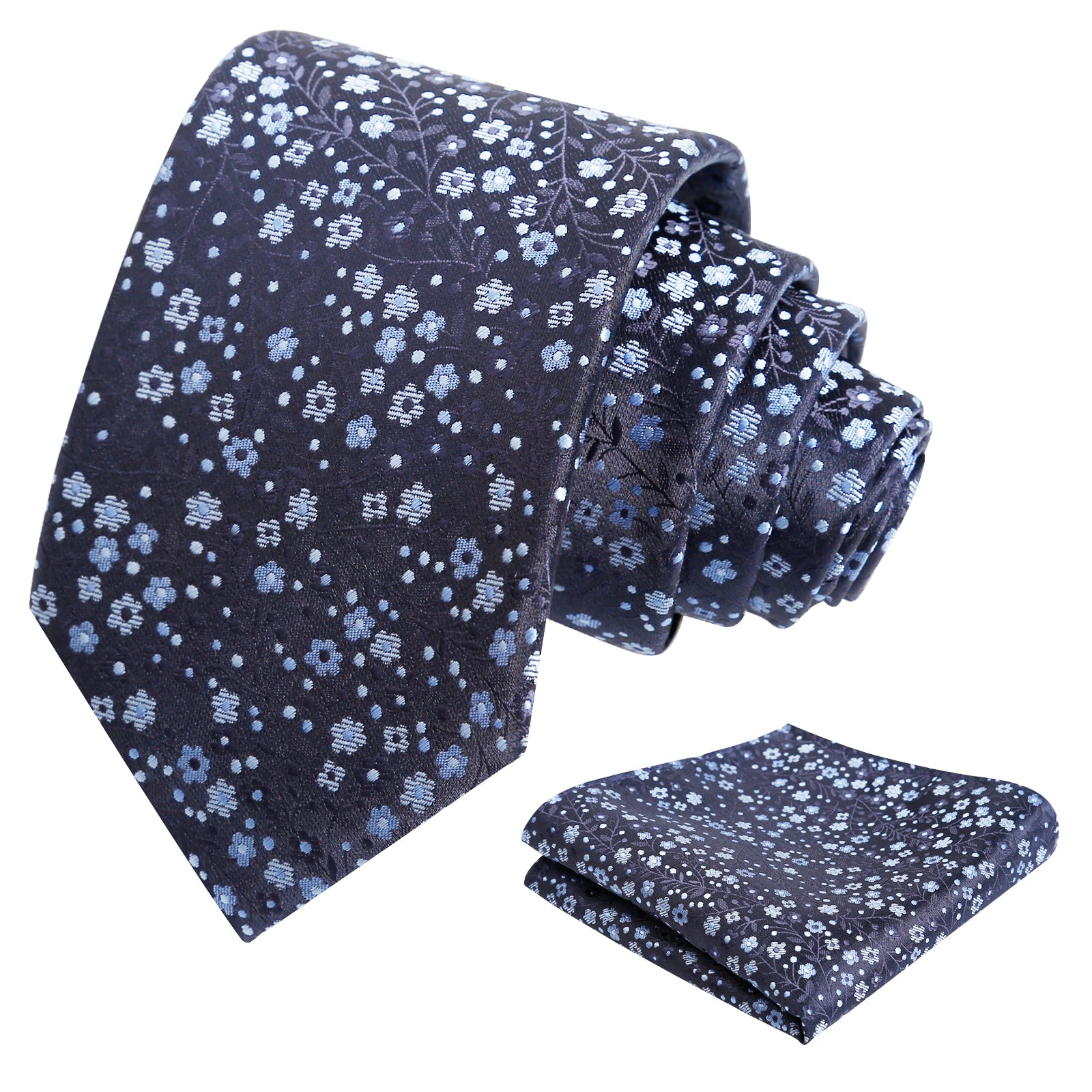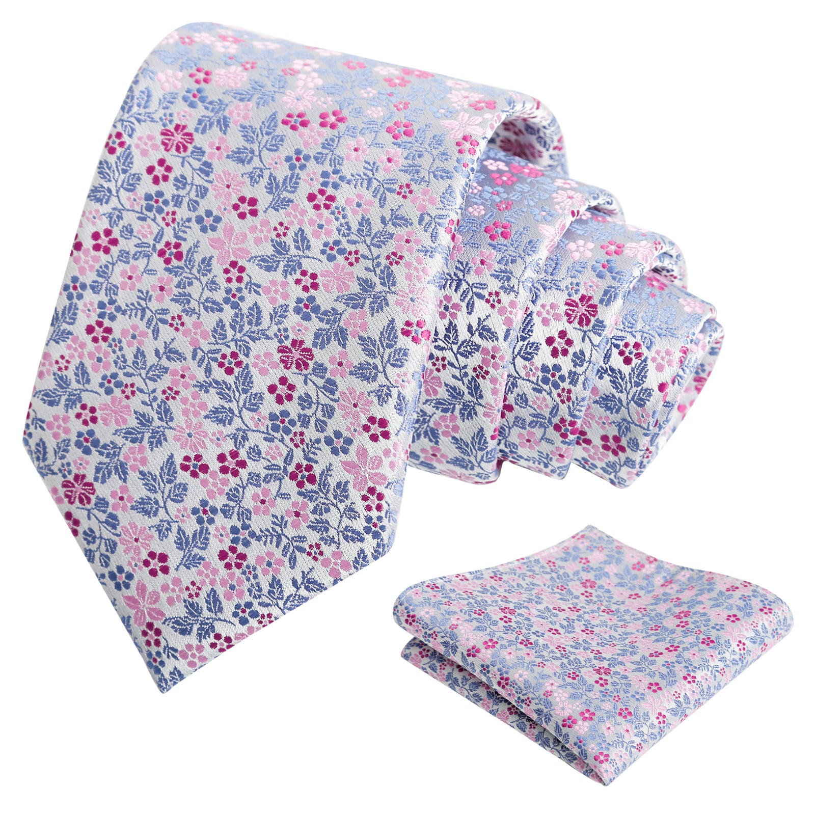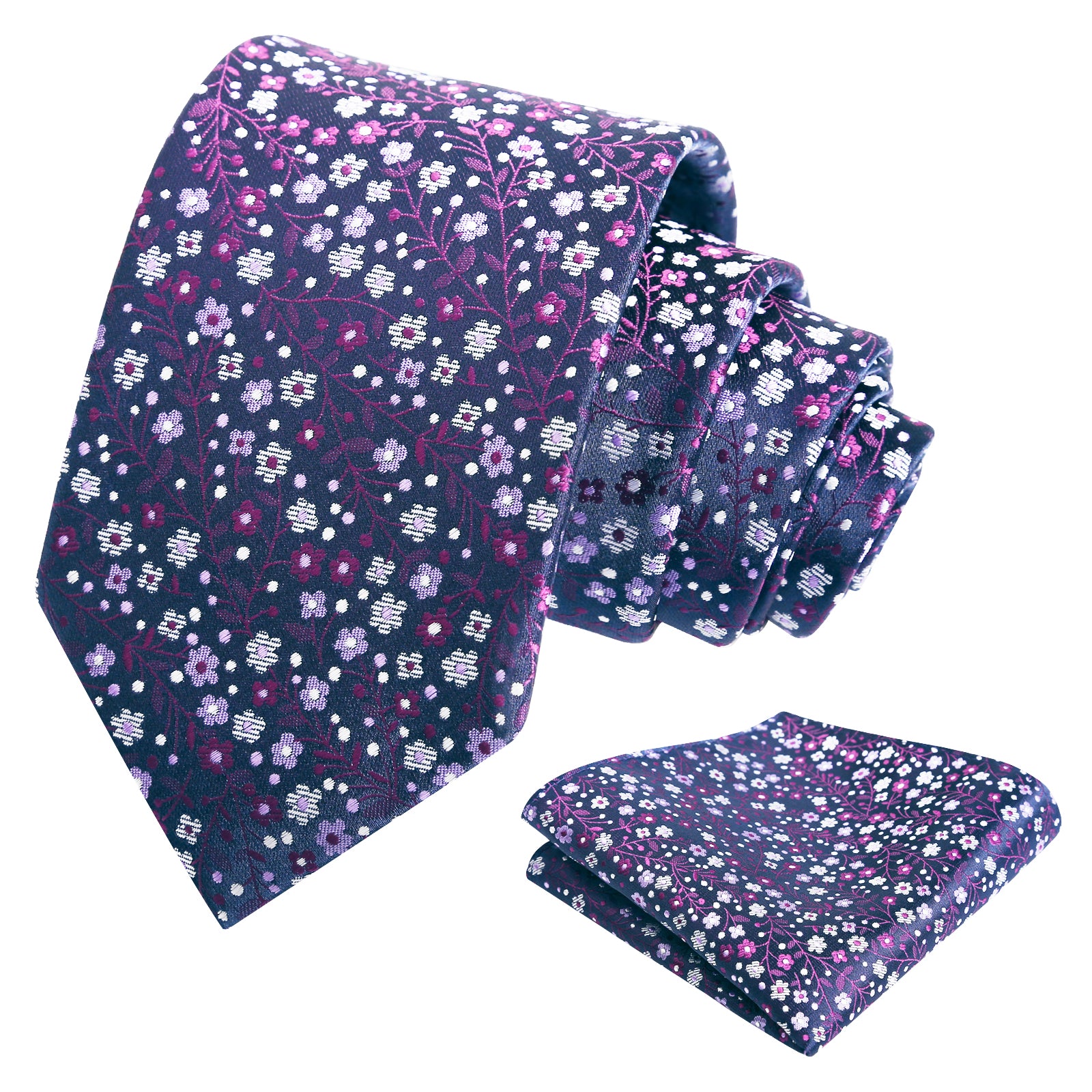 Mens 3.15" Floral Tie with Small Flower Printed Pocket Square-142