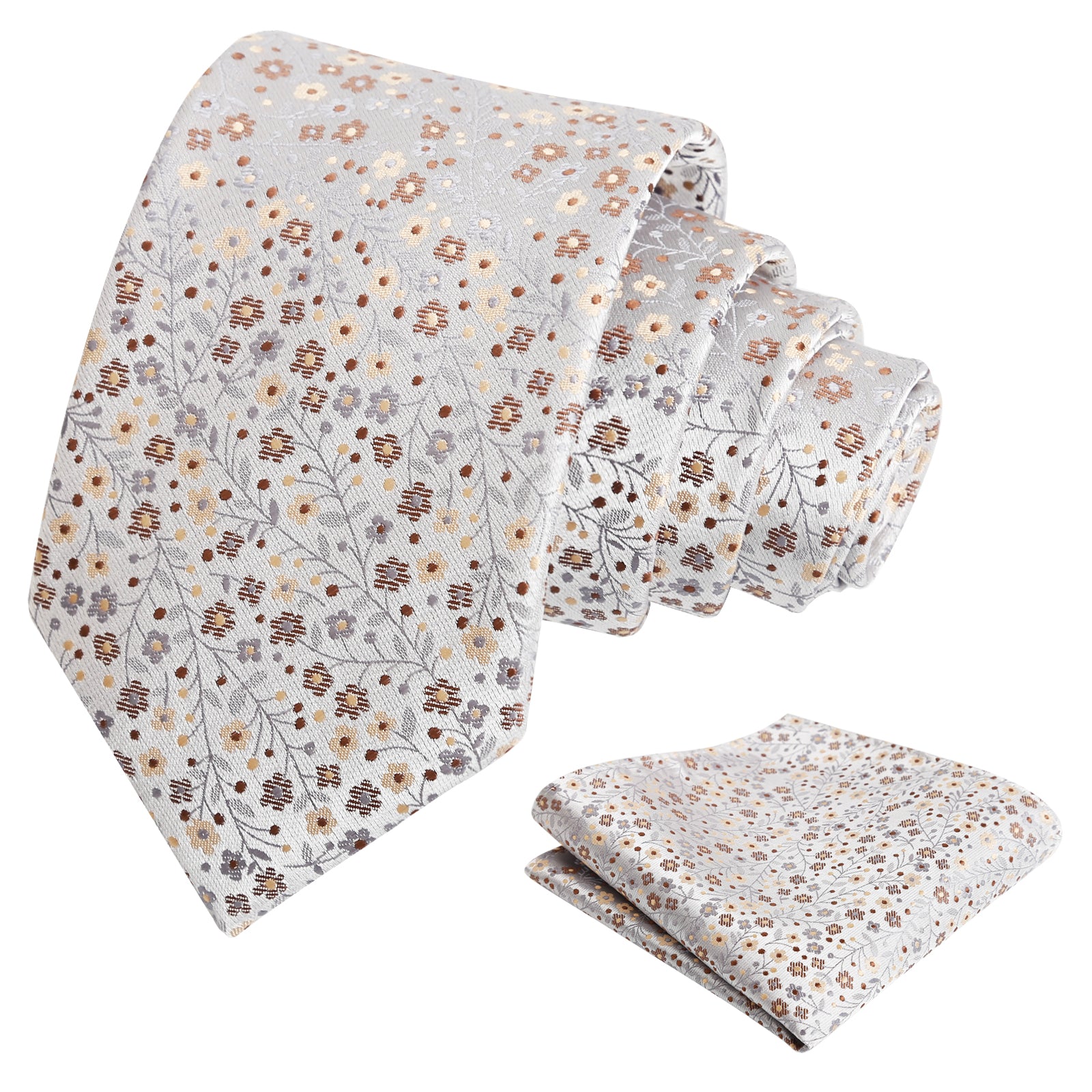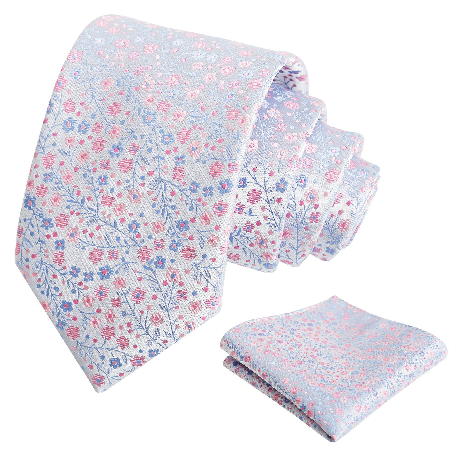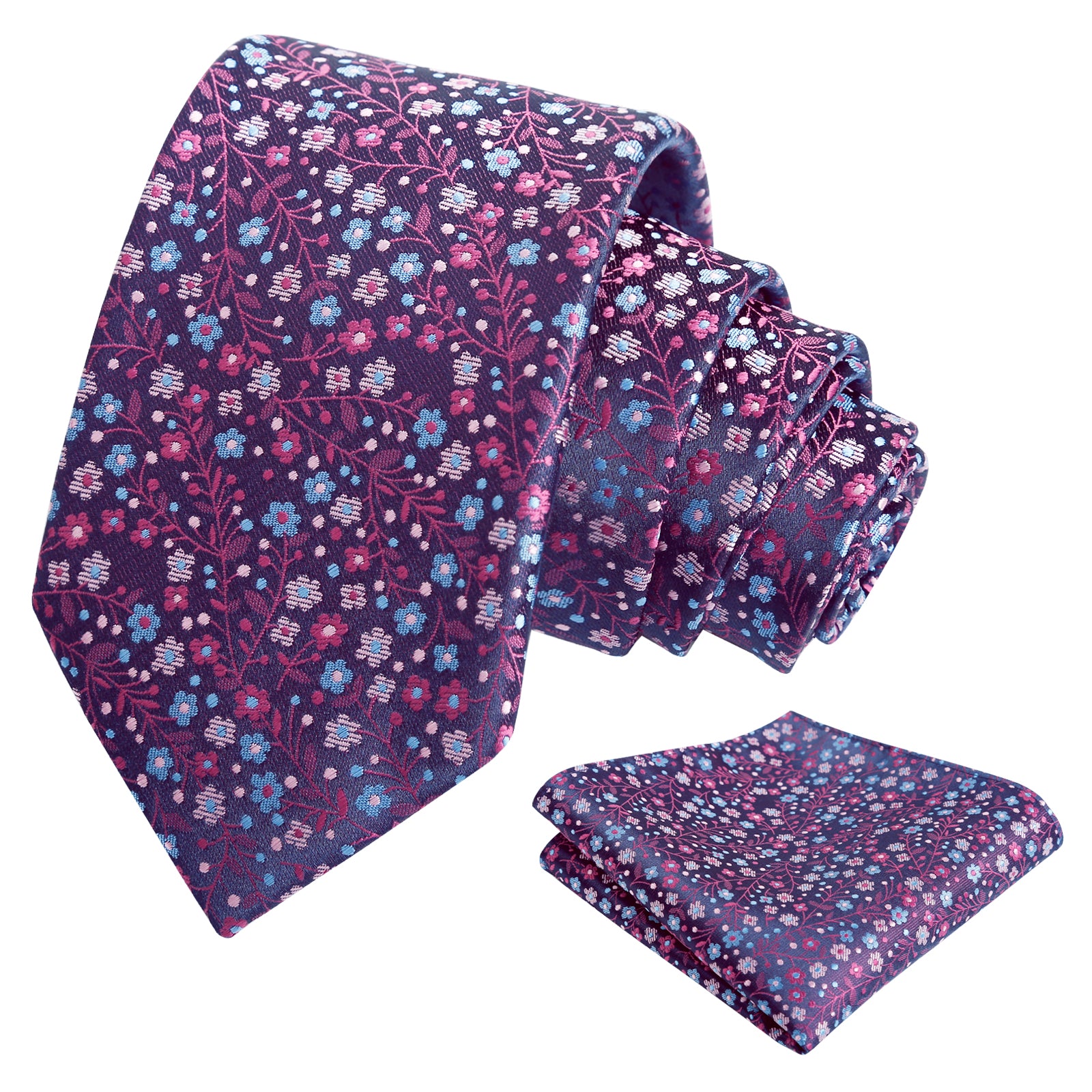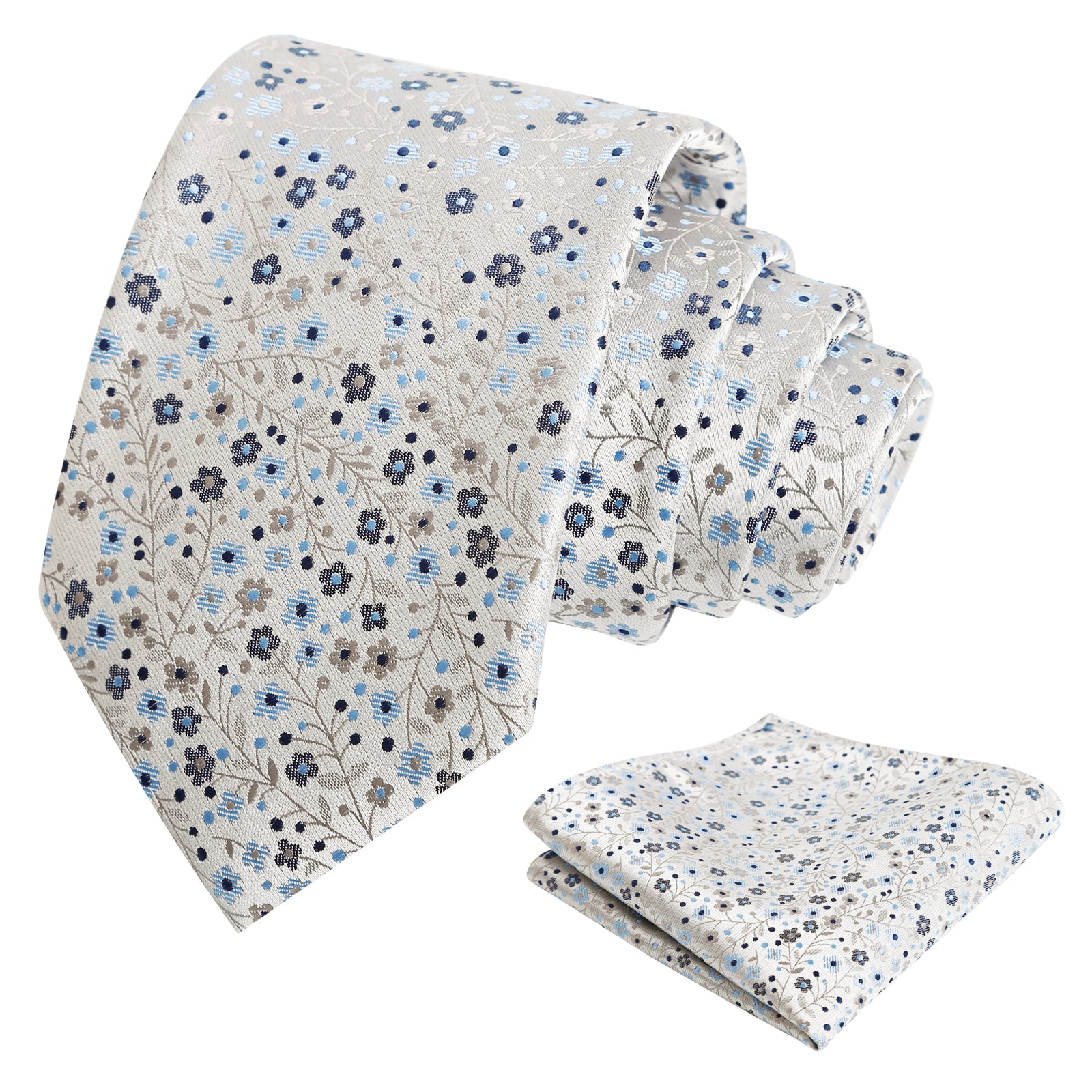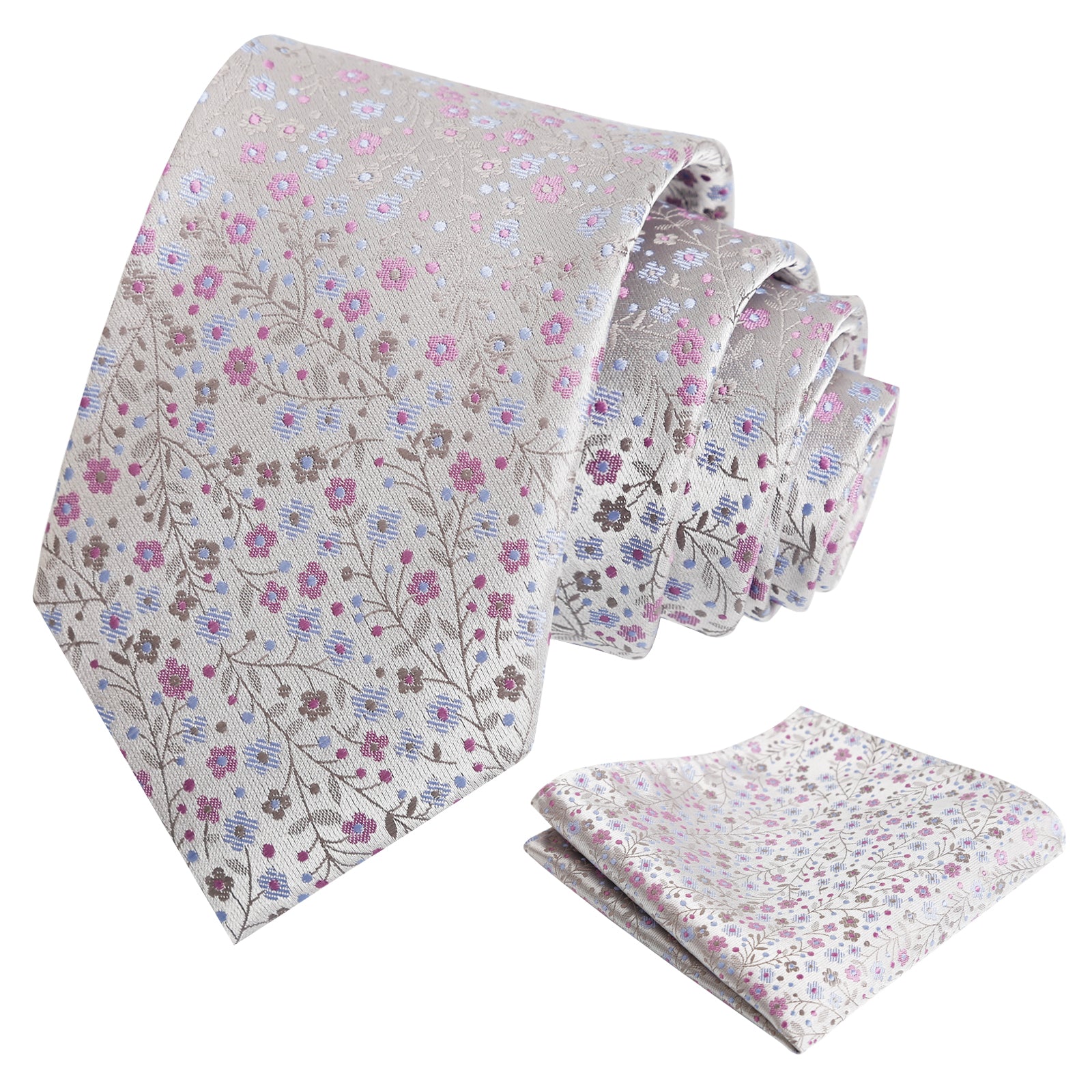 Mens 3.15" Floral Tie with Small Flower Printed Pocket Square-142