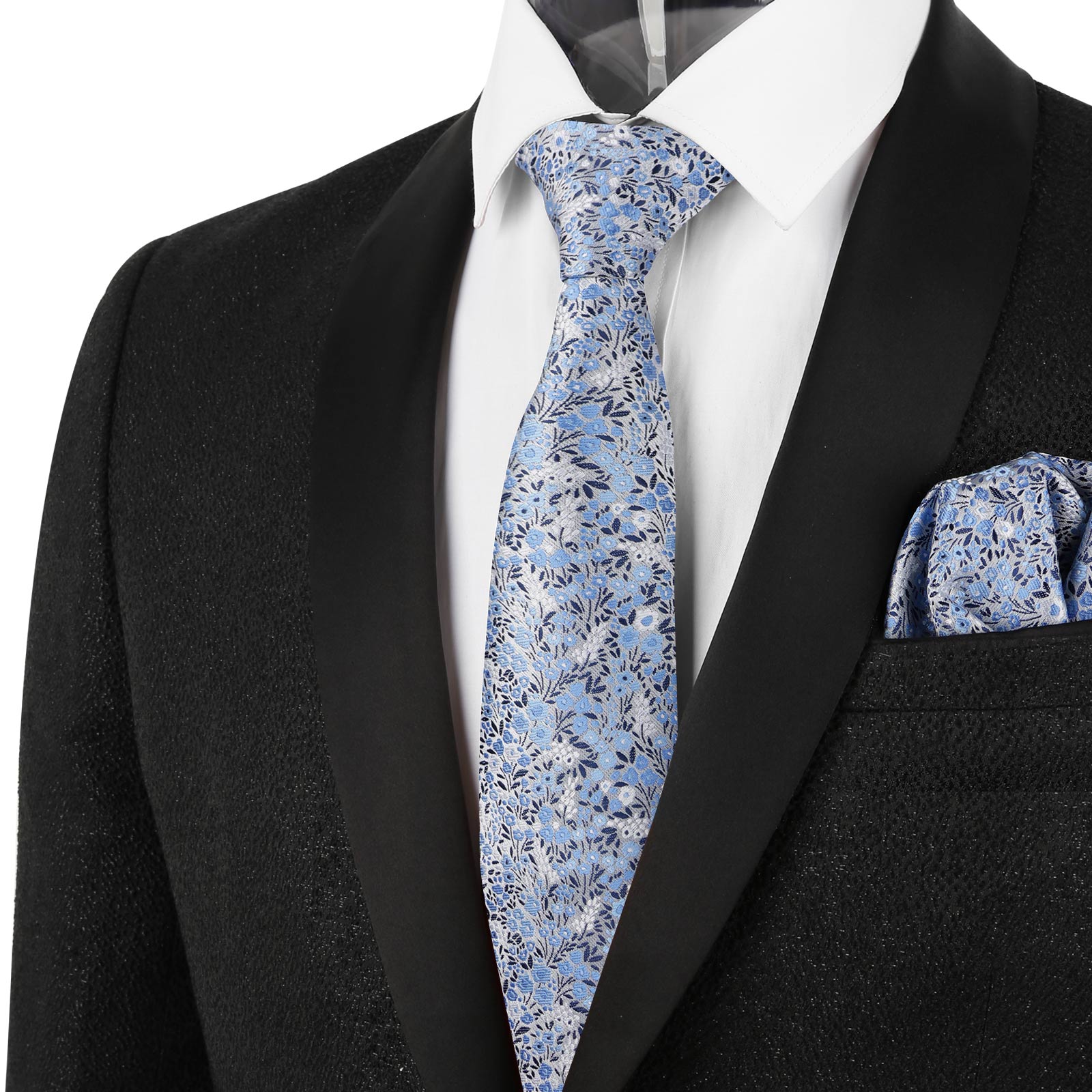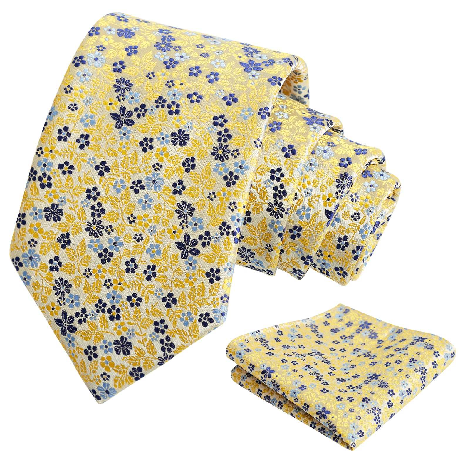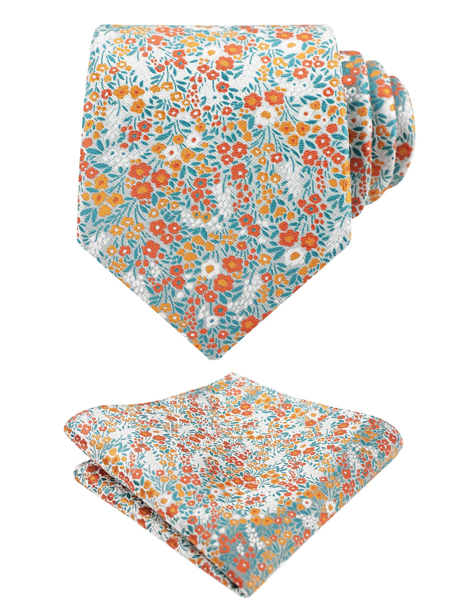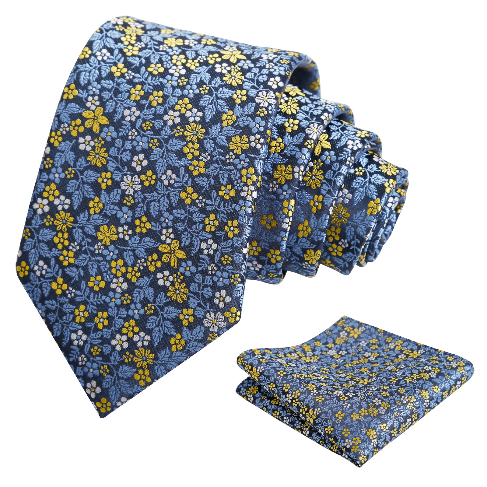 Mens 3.15" Floral Tie with Small Flower Printed Pocket Square-142
