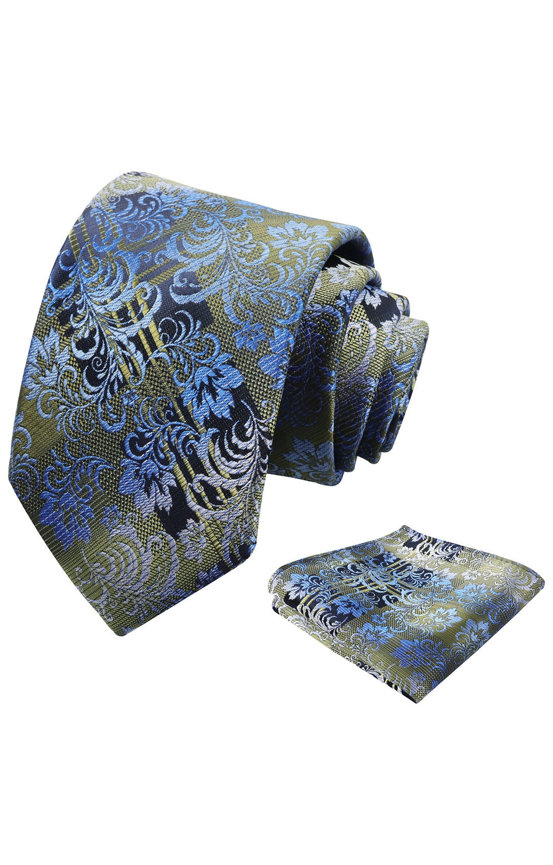 Mens 3.15'' Gradient Leaf Pattern Tie Set with Pocket Square Casual Tie Set-905