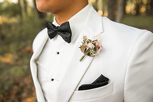- SIZE: Pre-tied bow tie(4.7x2.5inch/12x6.5cm); Pocket square(10x10inch/25x25cm)