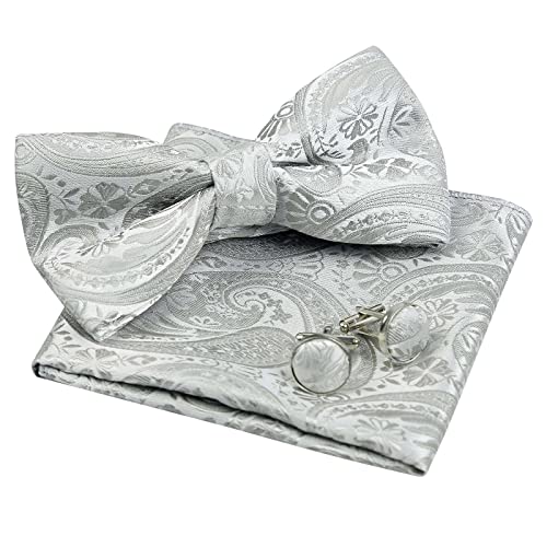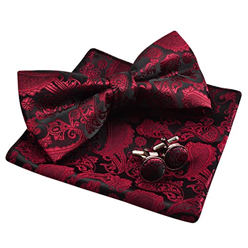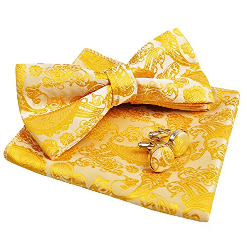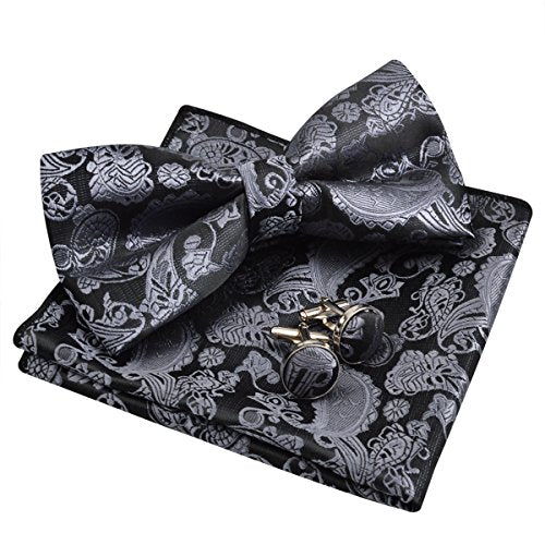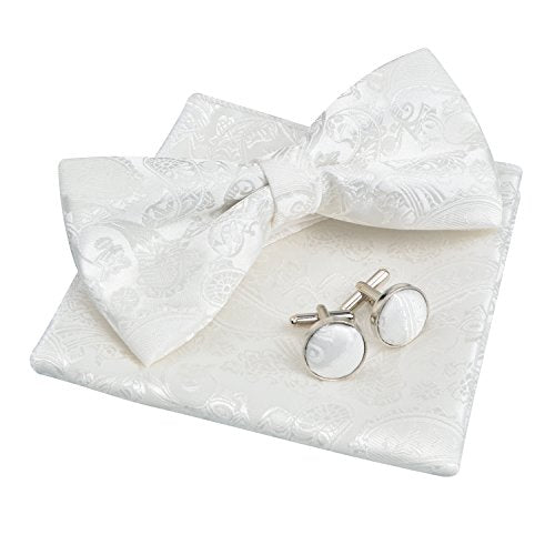 - PACKAGE INCLUDES: 1* pre-tied bow tie, 1* pocket square, 2 cufflinks