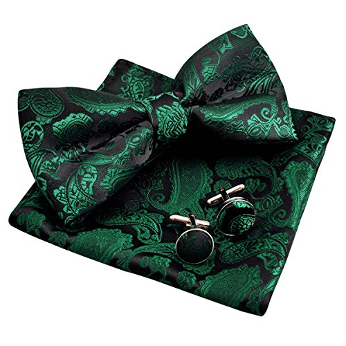 These paisley bow ties and pocket squares are well-made and with high-quality woven fabrics. Which will suit for you to wear on any occasion and always keep you comfortable. The reason for adopting to use of paisley patterns to make them is that can bring you a shiny look. Alizeal provides various colors for you to choose from, such as dark green paisley bow ties and pocket squares, black bow ties and pocket squares, red bow ties and pocket squares, and so on. And each set includes a pre-tied bow tie, pocket square, and two paisley cufflinks. Wear the items together or separately to elevate your formal wear or special occasion attire.