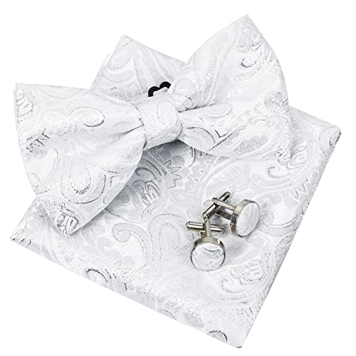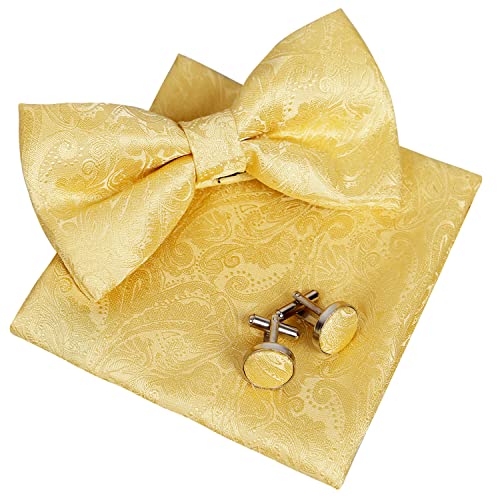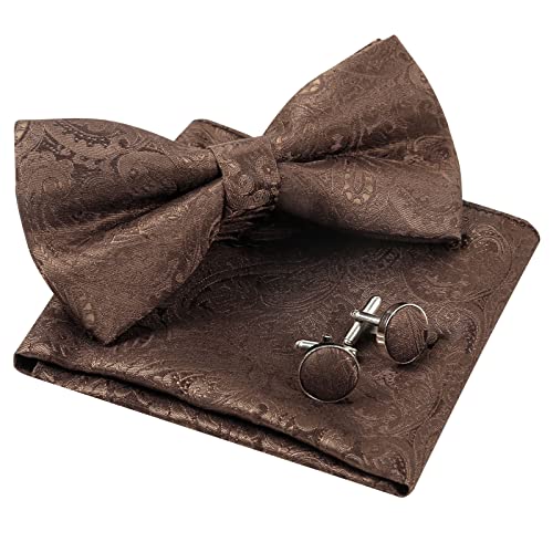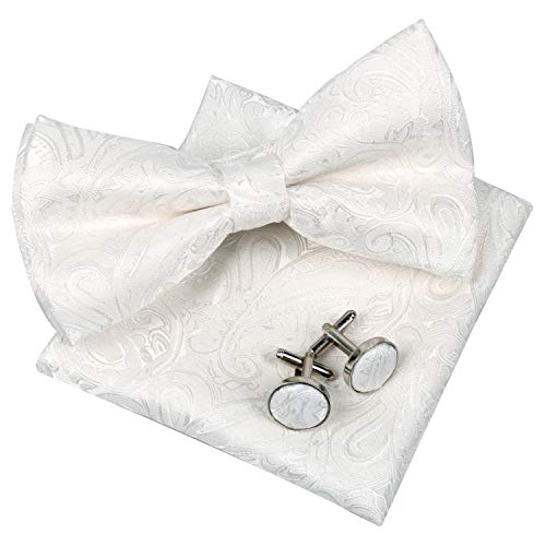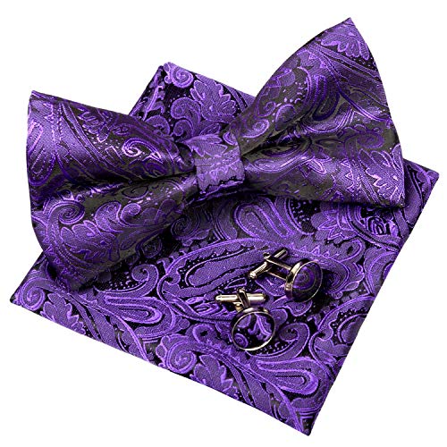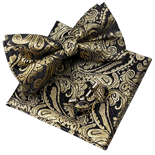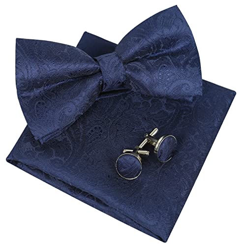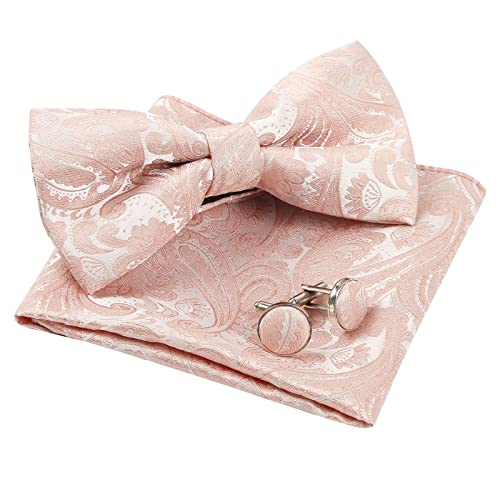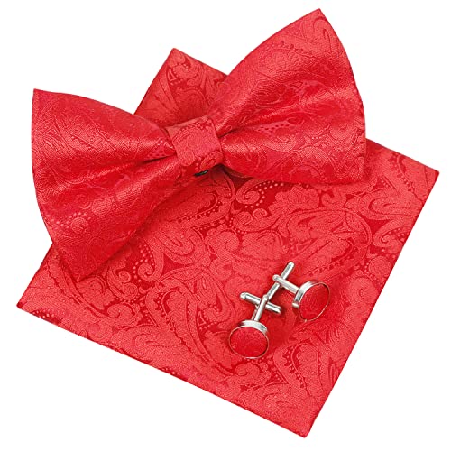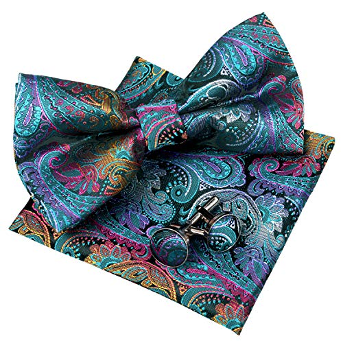 Men's Paisley Pre-tied Bow Tie, Pocket Square and Cufflinks Set-048