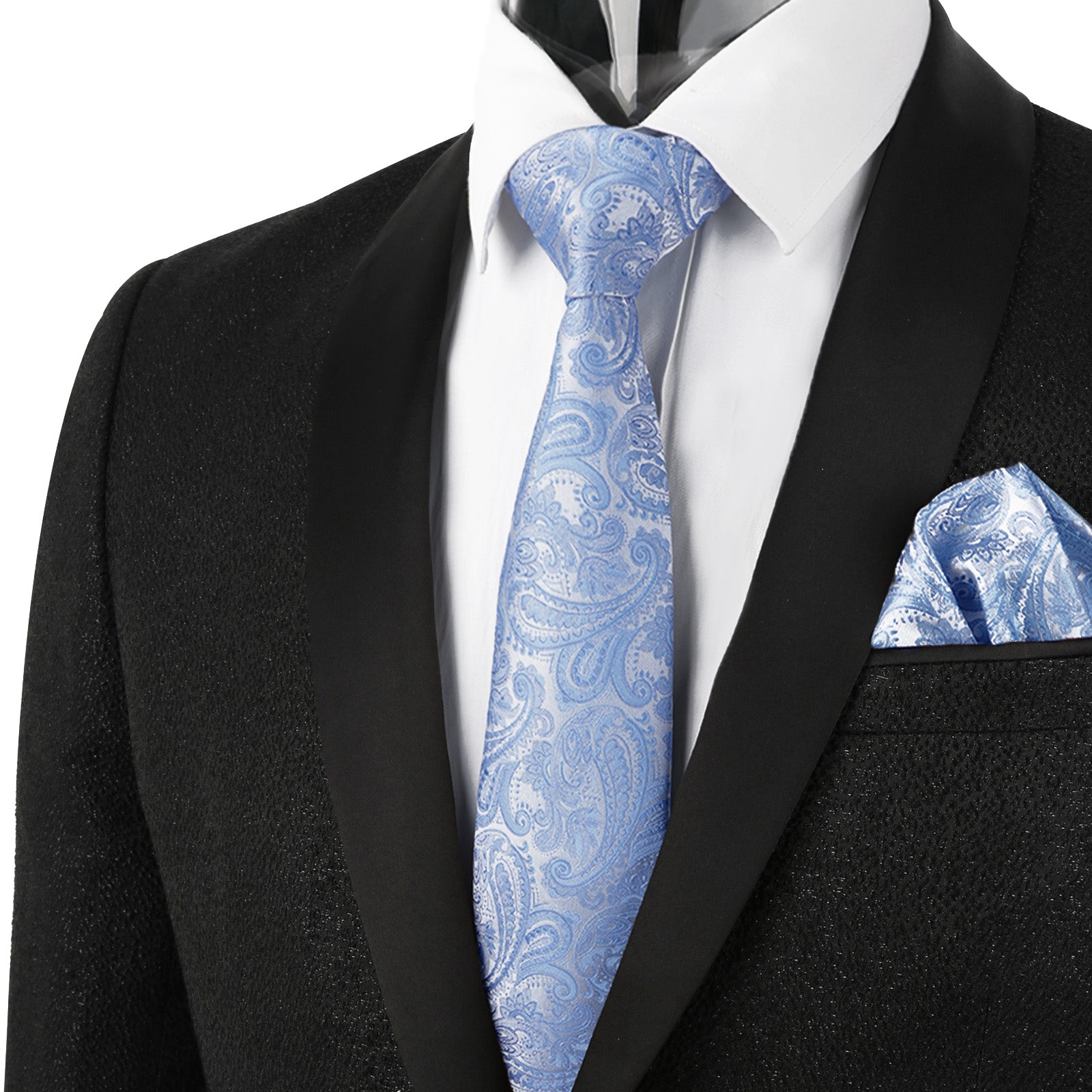 - SIZE: Tie width is 3.35 inches(8.5cm); tie length is 59 inches(150cm); Handkerchief is 10 inches x 10 inches(25cm x 25cm)