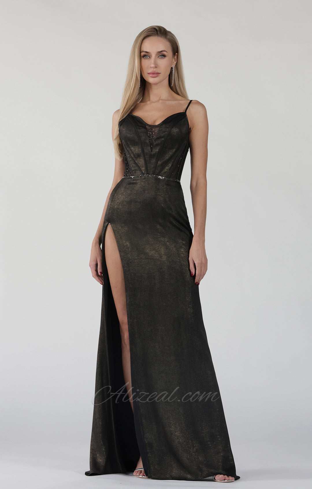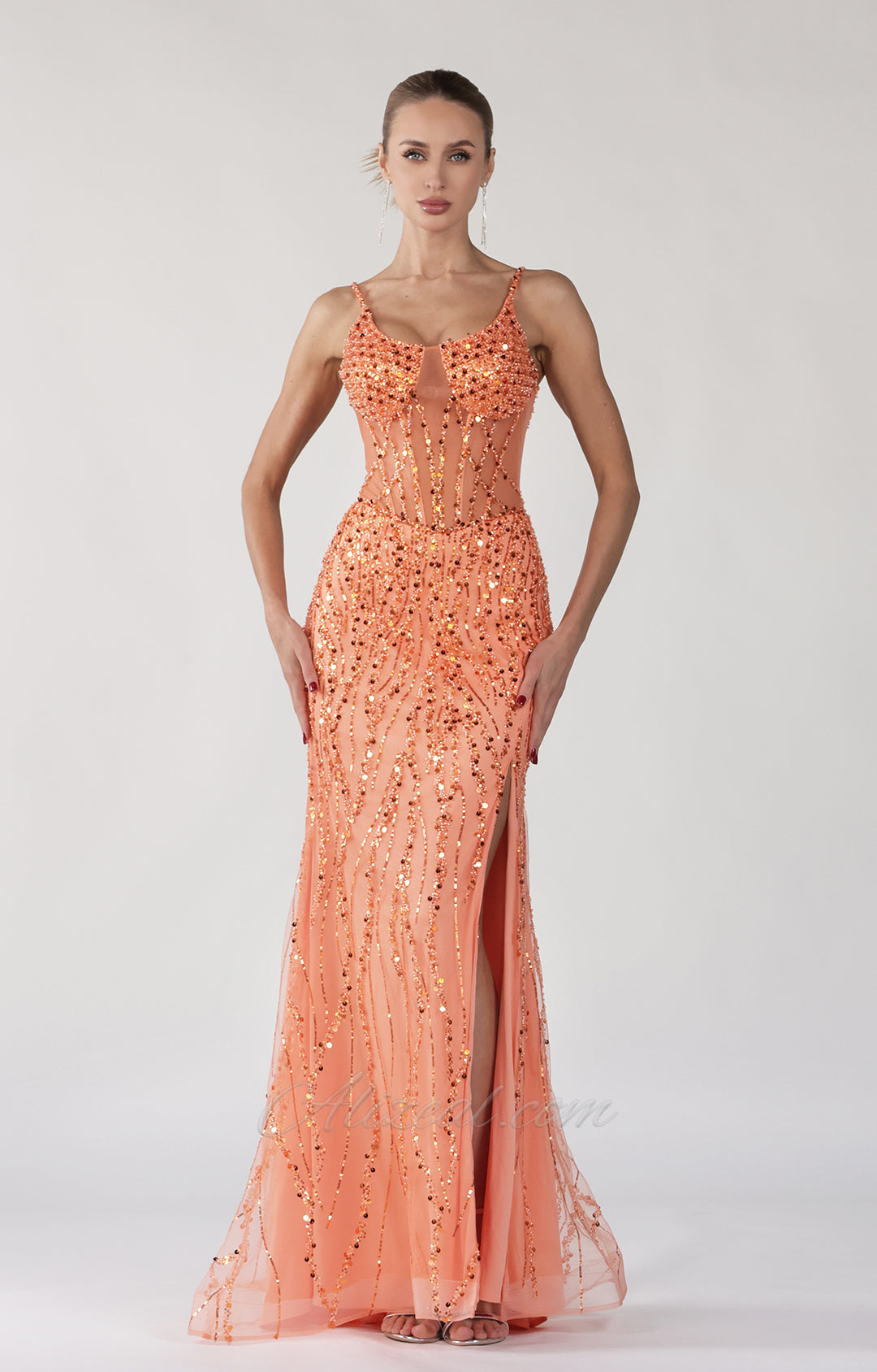 Sparkling Sequins Bodice V-Neck High Split Tail Evening Dress