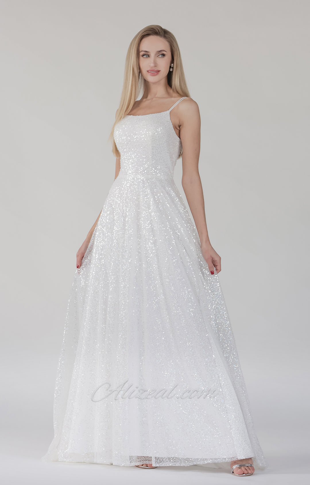 Square Collar Spaghetti Straps Sparkling Sequins Maxi Dress