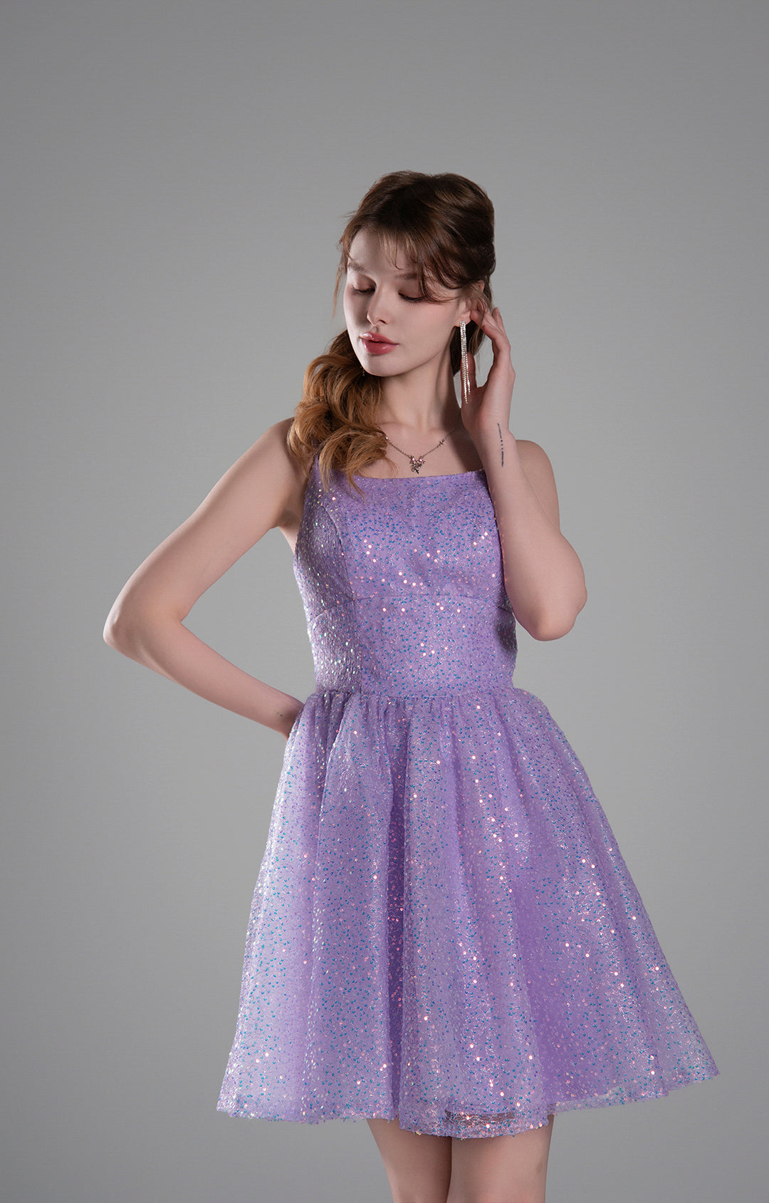 Square Neckline Spaghetti Straps Bodycon Sequin Mini Dress