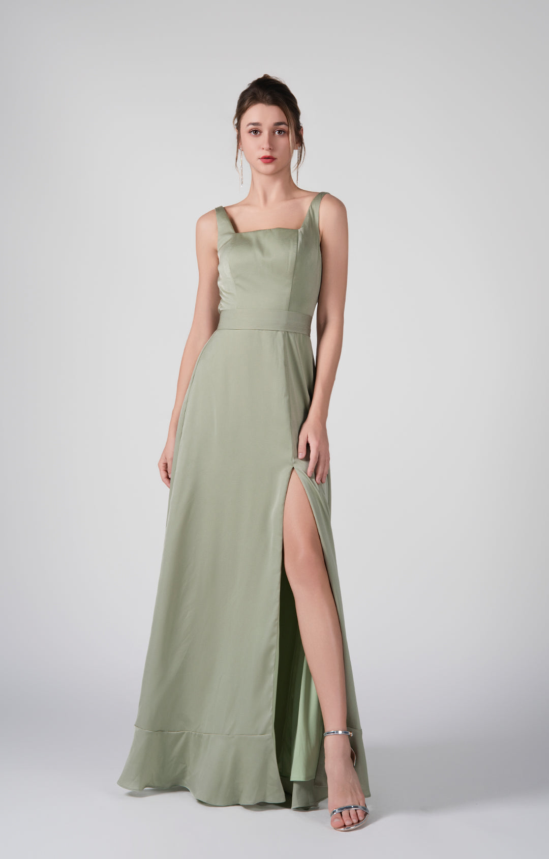 Square-Neck Wide Straps Side Slit A-Line Dresses