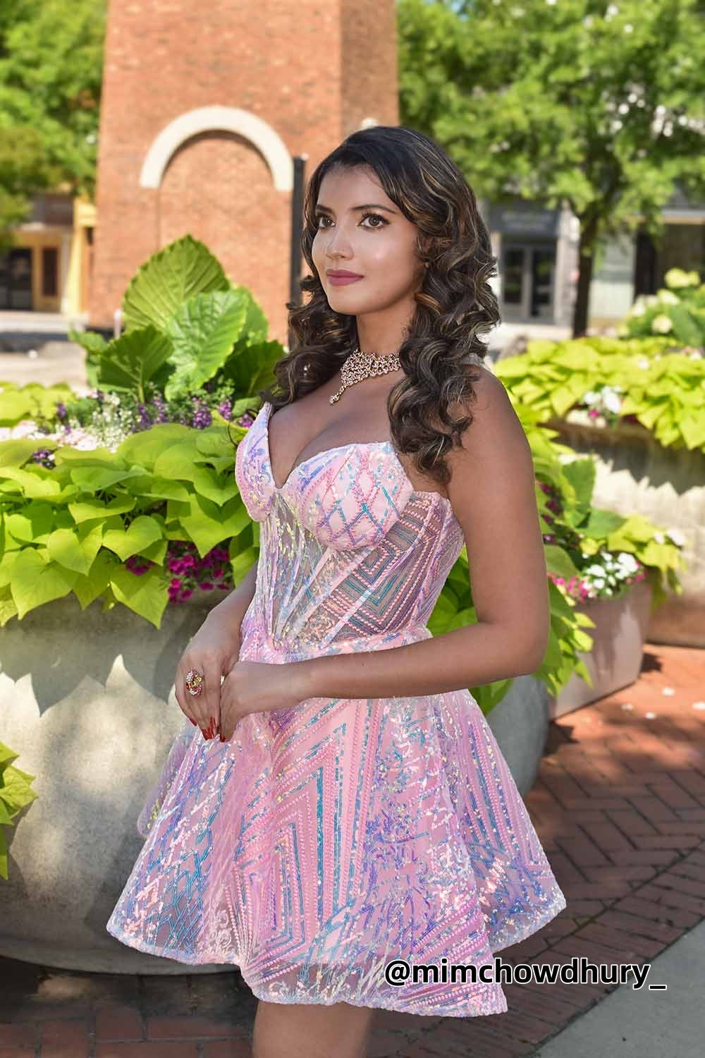 Strapless Fishbone Sequins Corset Bodic Mini Dress