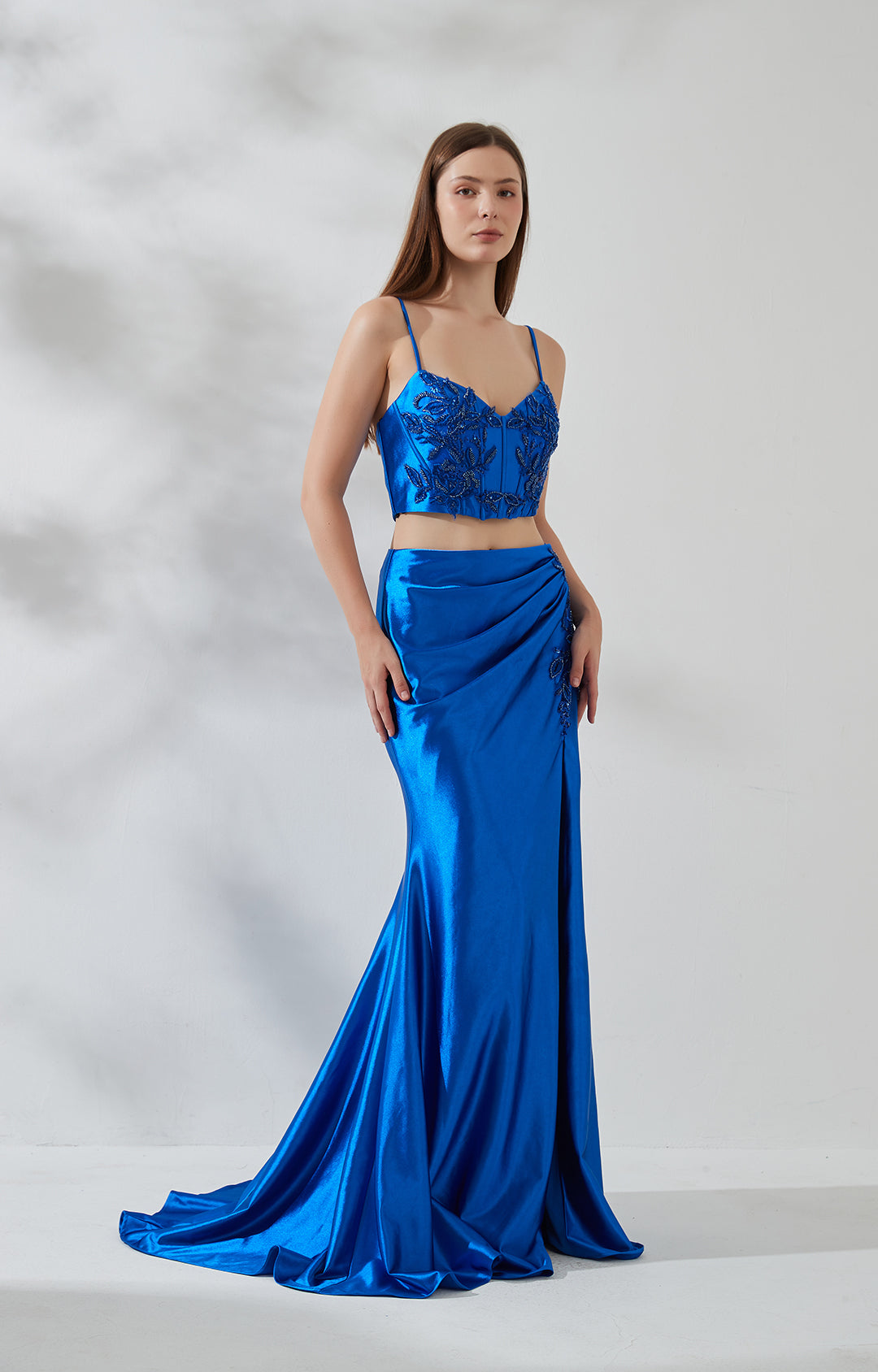 Two-Piece V-neck Appliqued Spilt Lace-up Back Fishtail Evening Dress