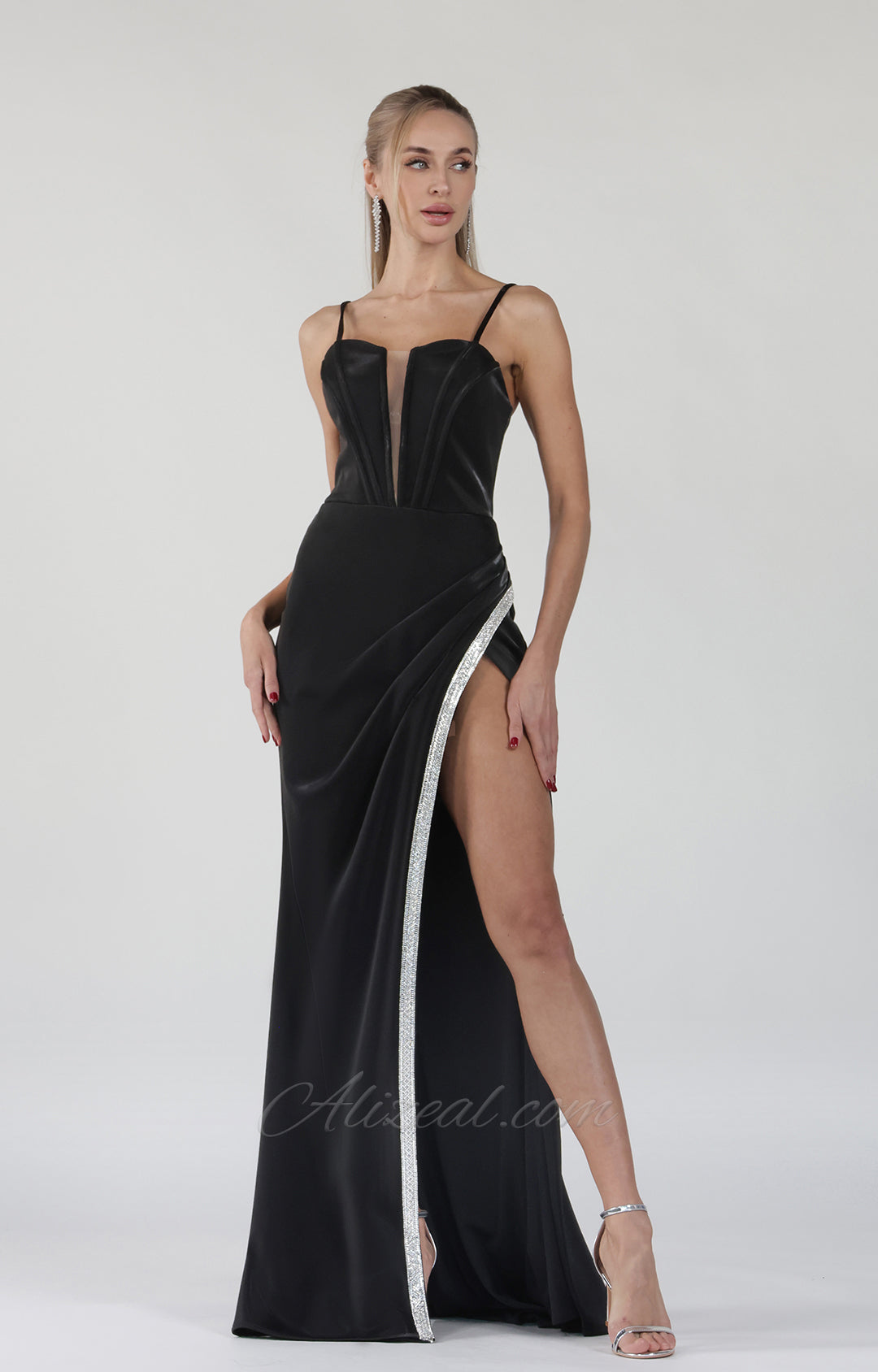 Tube Top High Split Sequins Backless Floor Length Evening Dress
