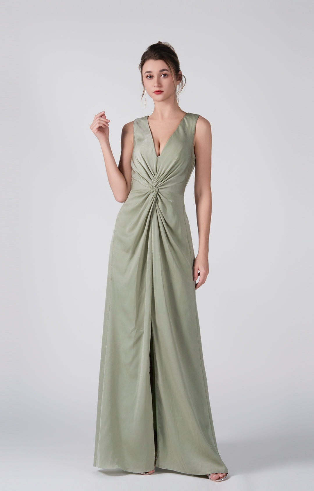 Tank Straps V-Neck Pleated Side Slit A-line Dresses
