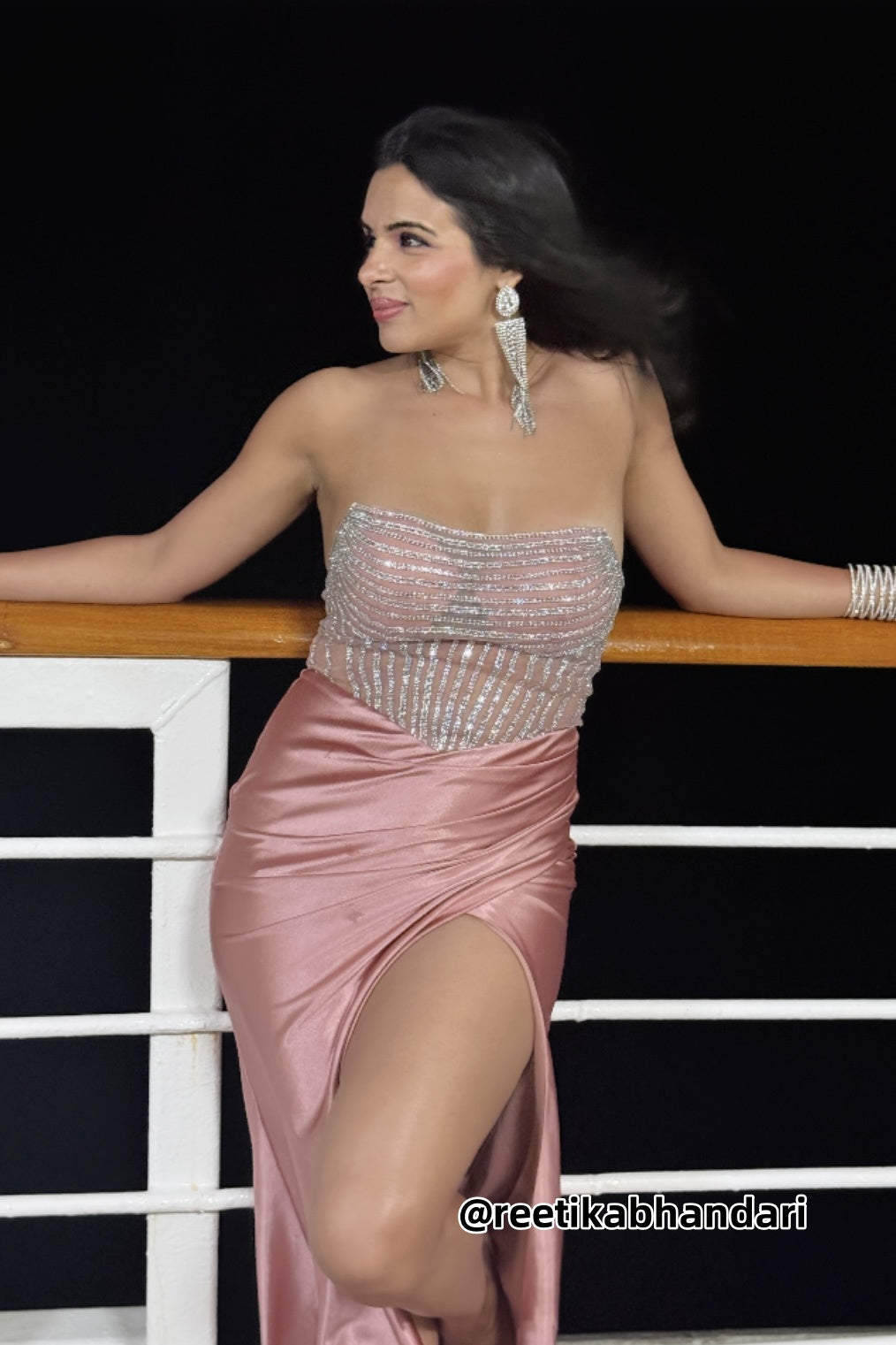 Boat Neck Embellished Draped Back Dresses