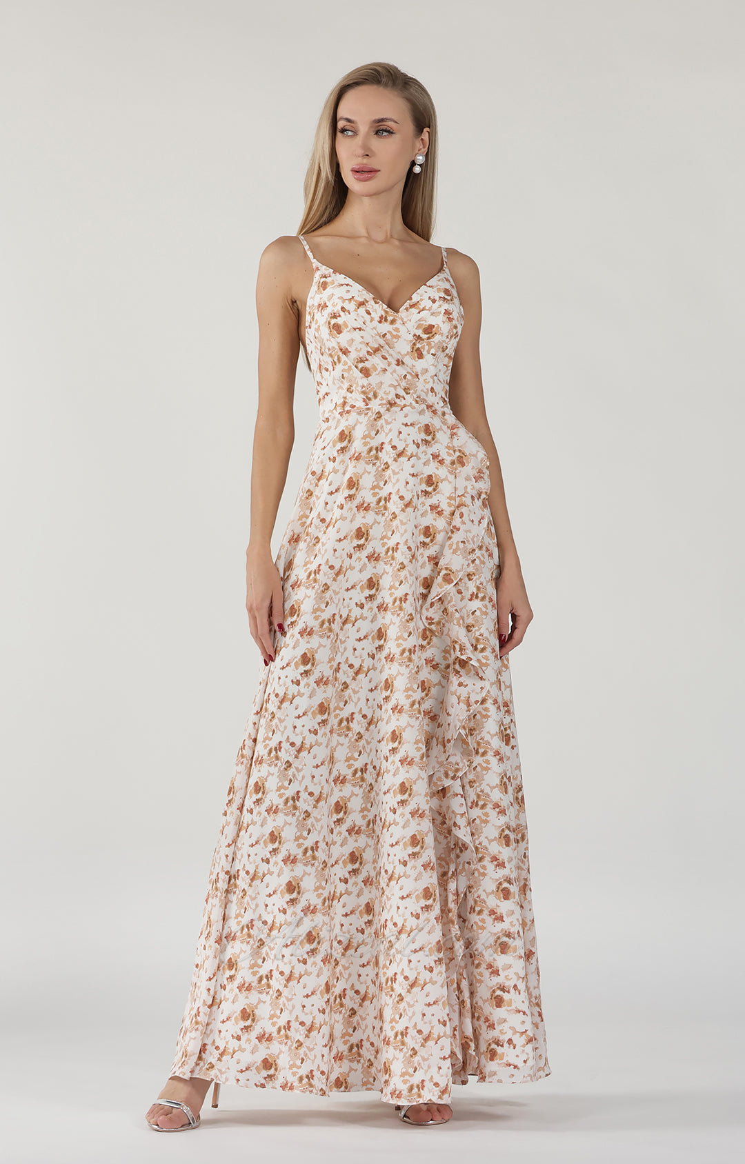 V-Neck Spaghetti Straps A-Line Side Split Floral Print Maxi Dress