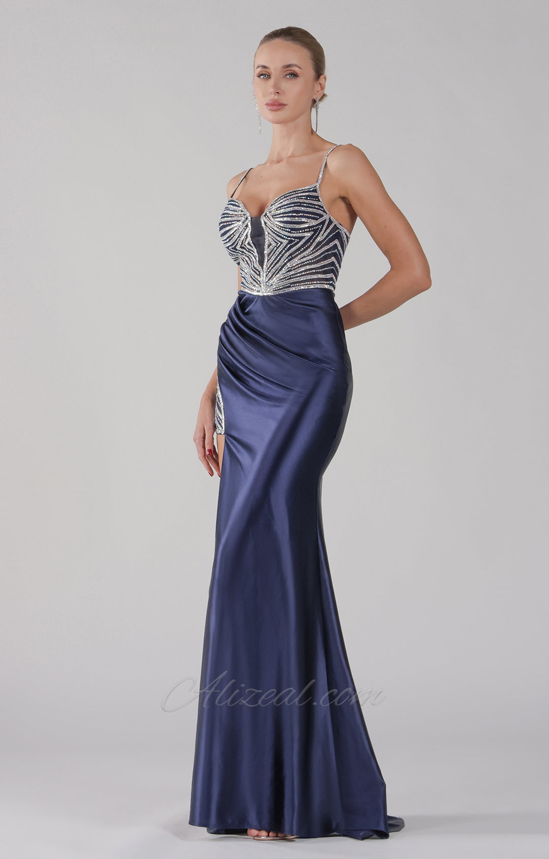 V-Neck Strapless Sequins Corset Mermaid Dress
