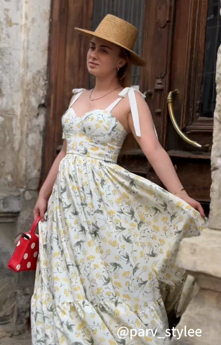 V-Neck Wide Straps Floral Printed A-Line Maxi Dress