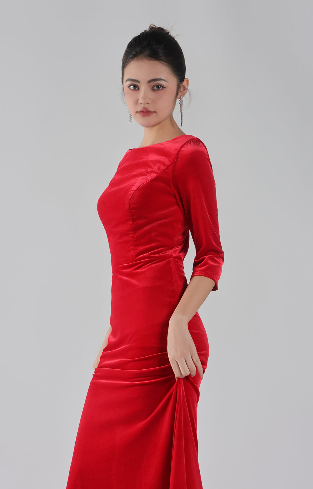 V-Neck Wrap Hip Cowl Back Mermaid Dresses