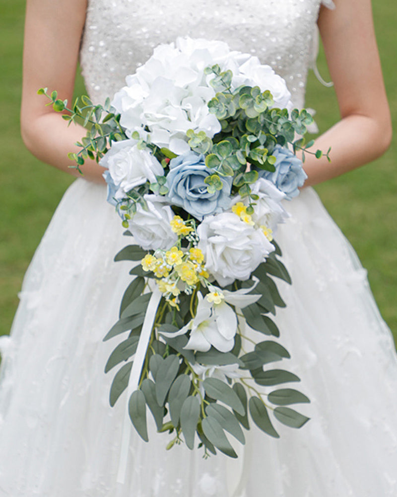 Waterfall Romantic Blue White Rose Flowers Wedding Bouquet