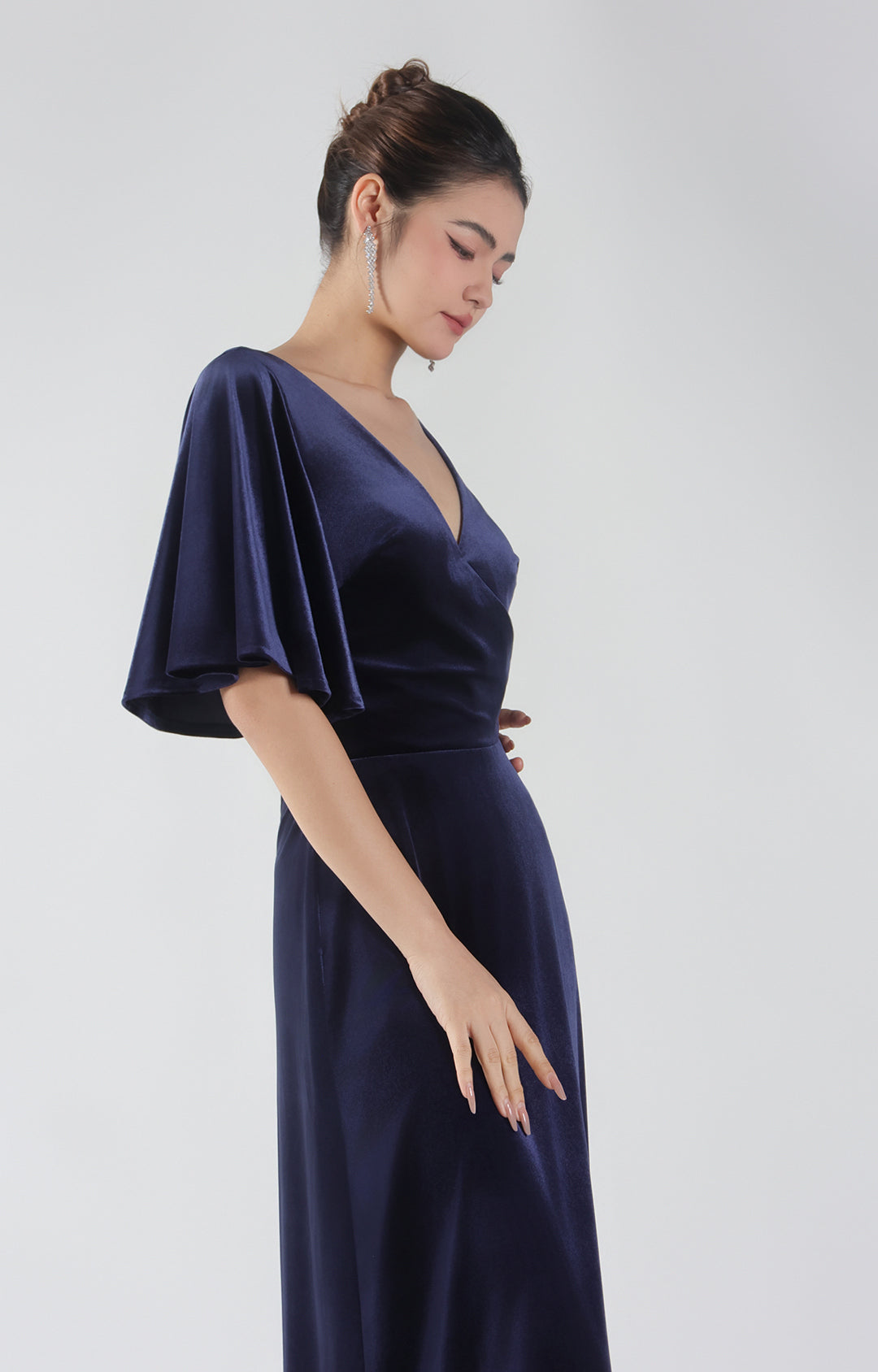 Velvet Flutter Half Sleeve V-Neck Floor Length Dresses
