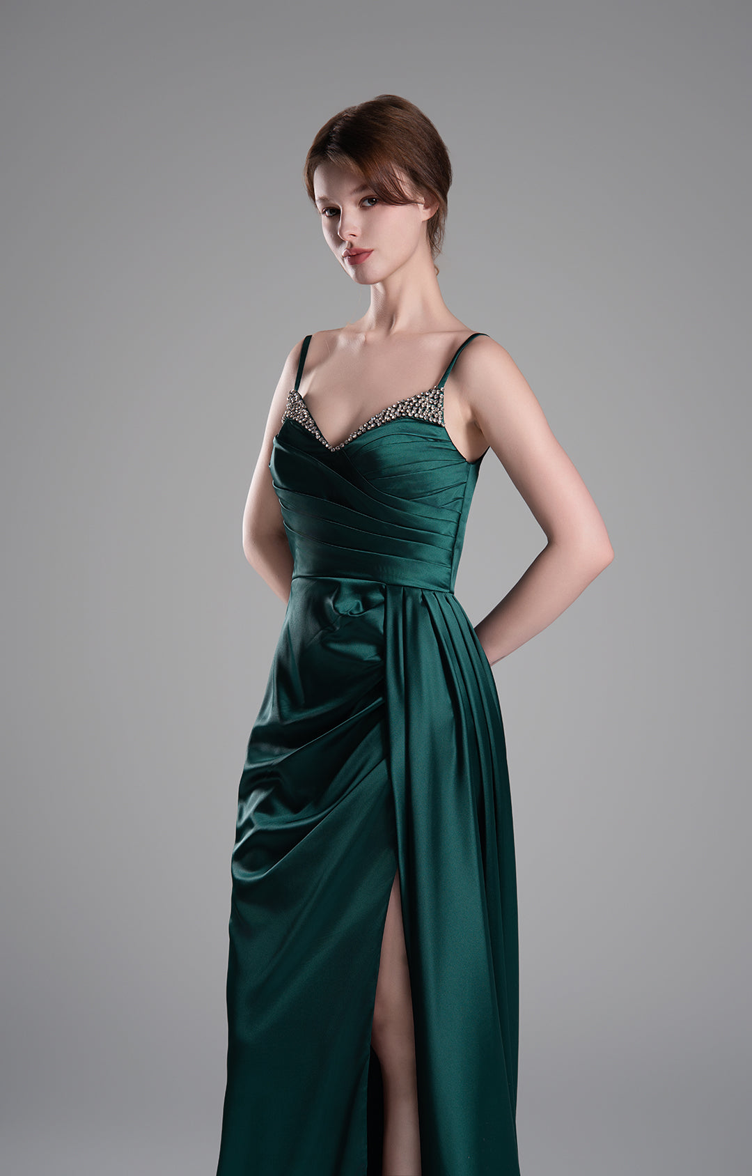 Elegant Ruched Bodice and Side Slit Evening Dresses
