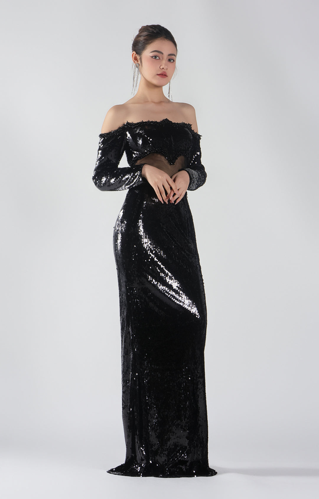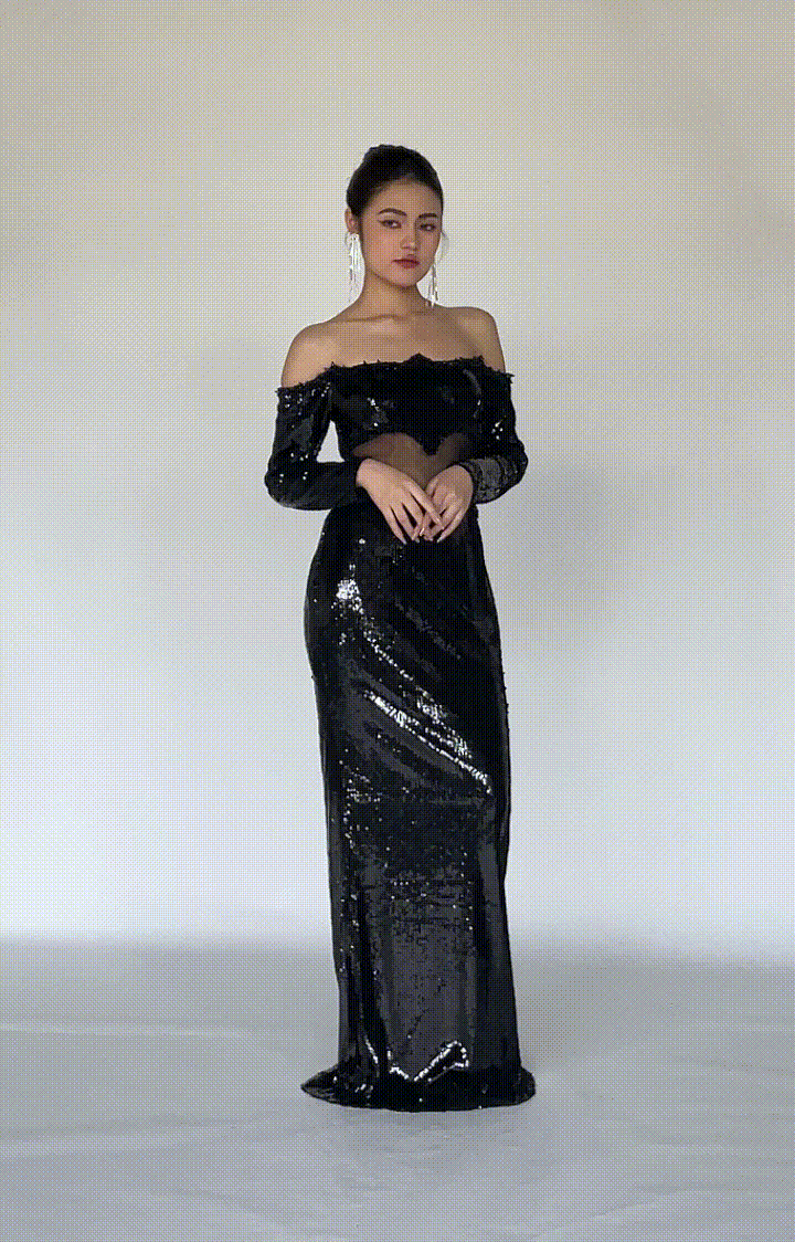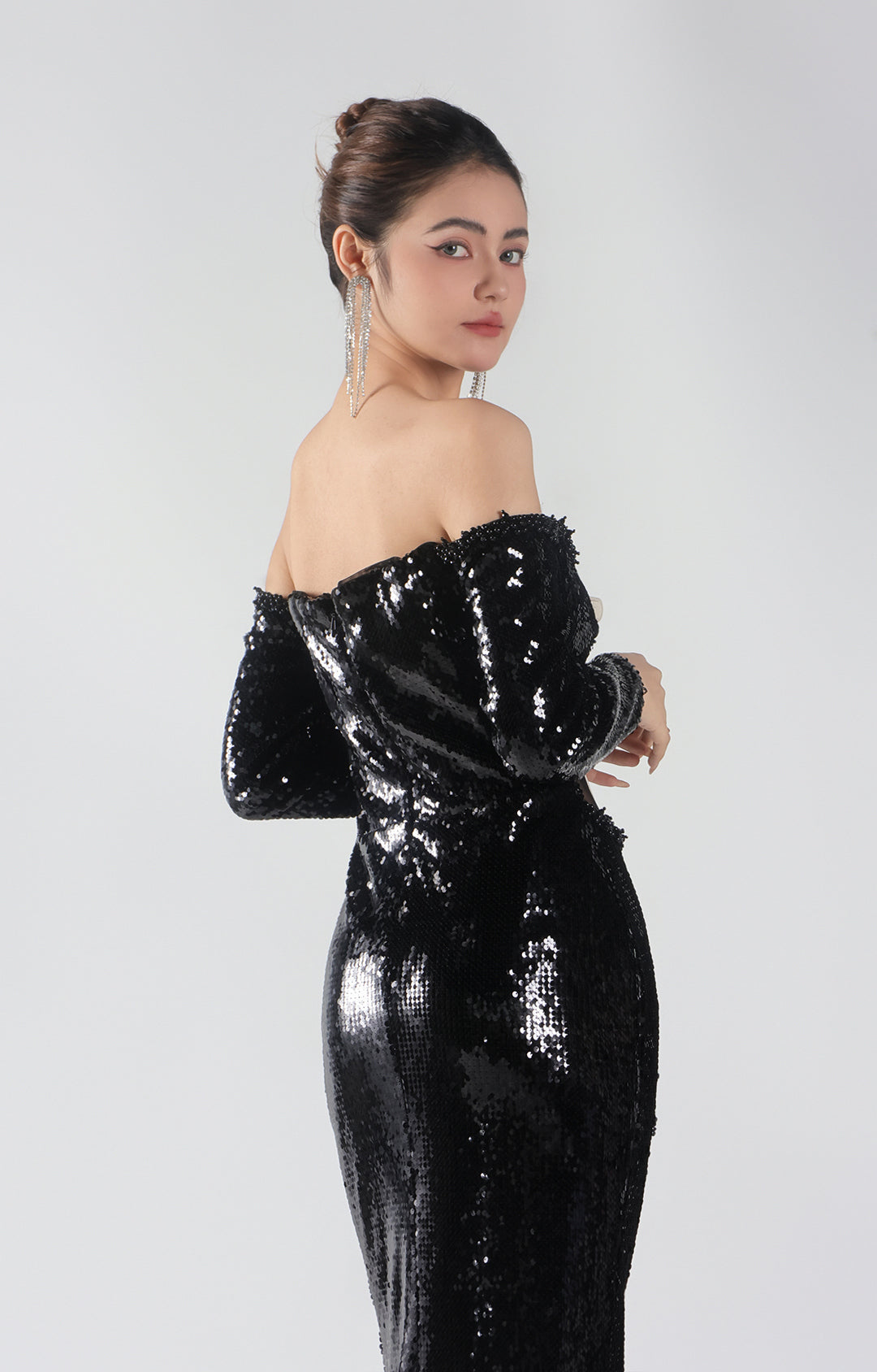 Designed for red carpet events, formal galas, evening banquets, or fashion-forward parties, this statement gown delivers high drama and impeccable elegance. With its sequin embellishment and sculpted shape, it promises to leave a lasting impression.