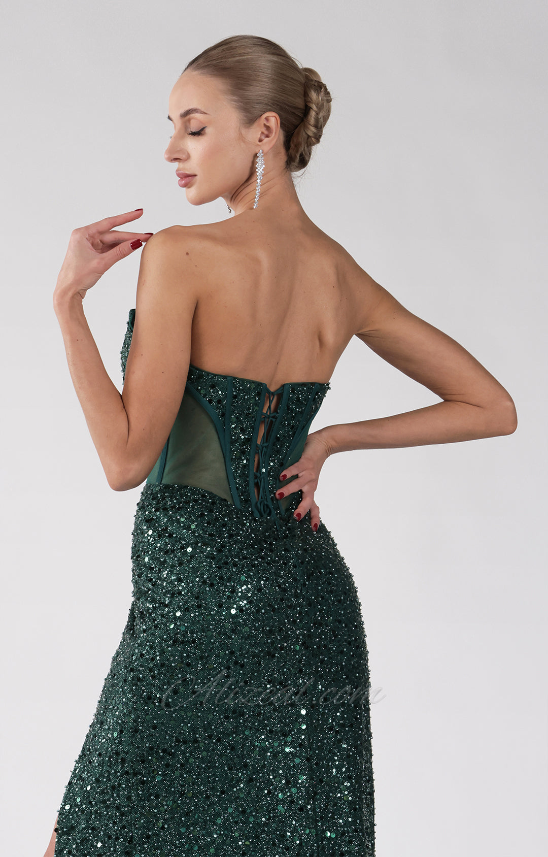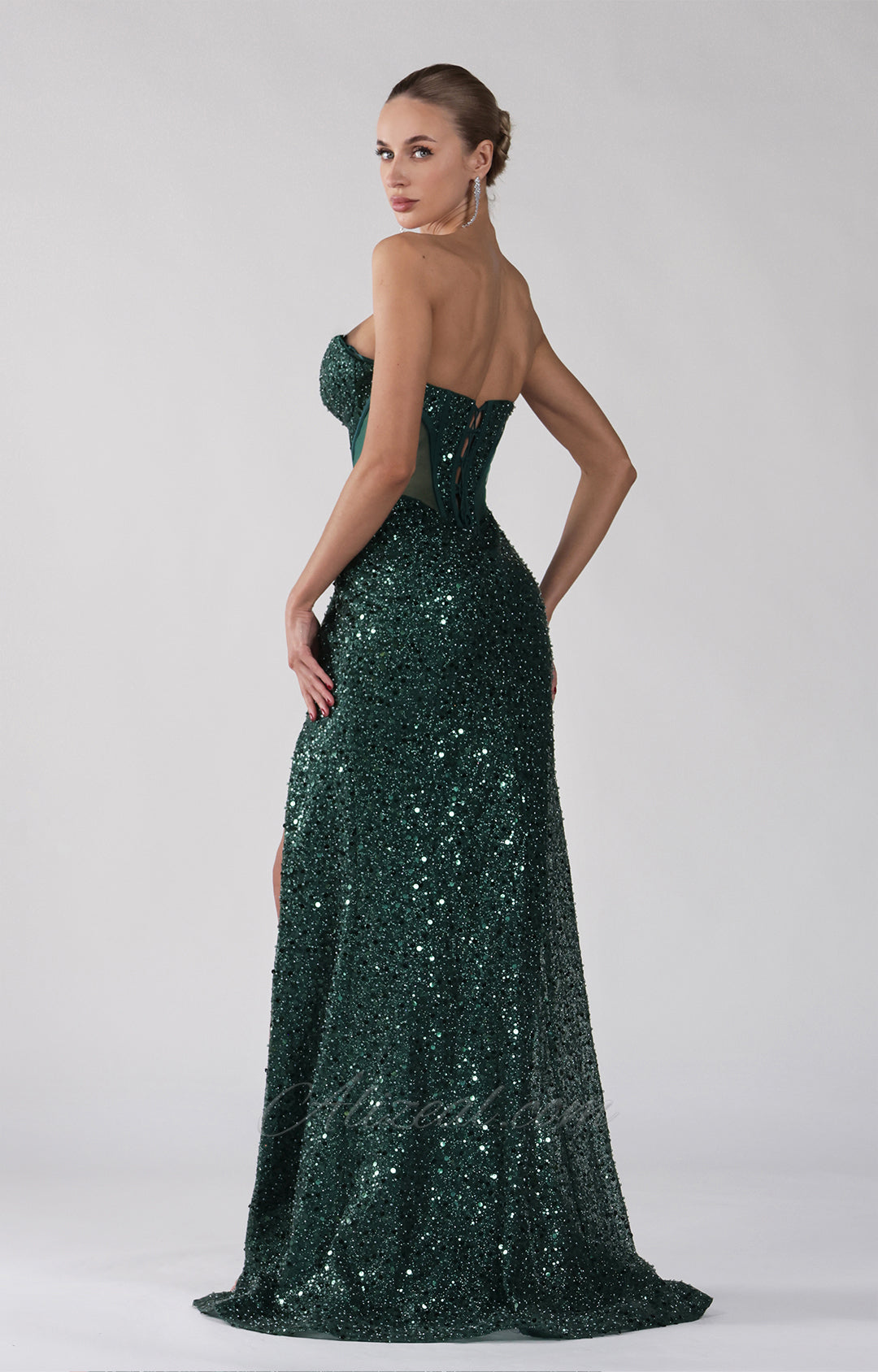 Sequin Strapless V-Neck Split Lace-up Bodice Dress