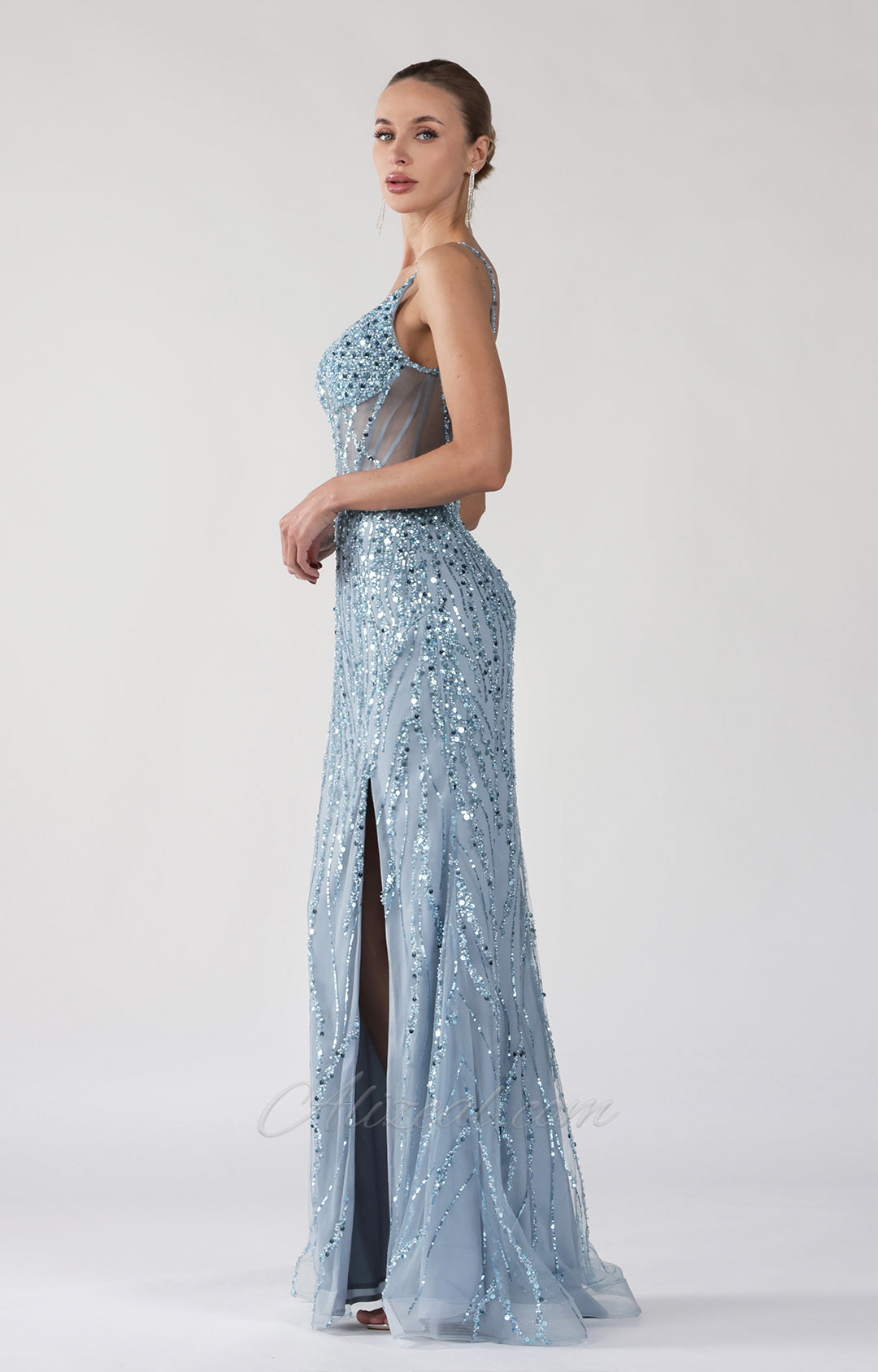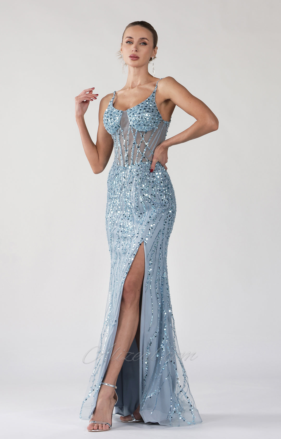 Spaghetti Straps Round Neck Transparent Corset Evening Dress