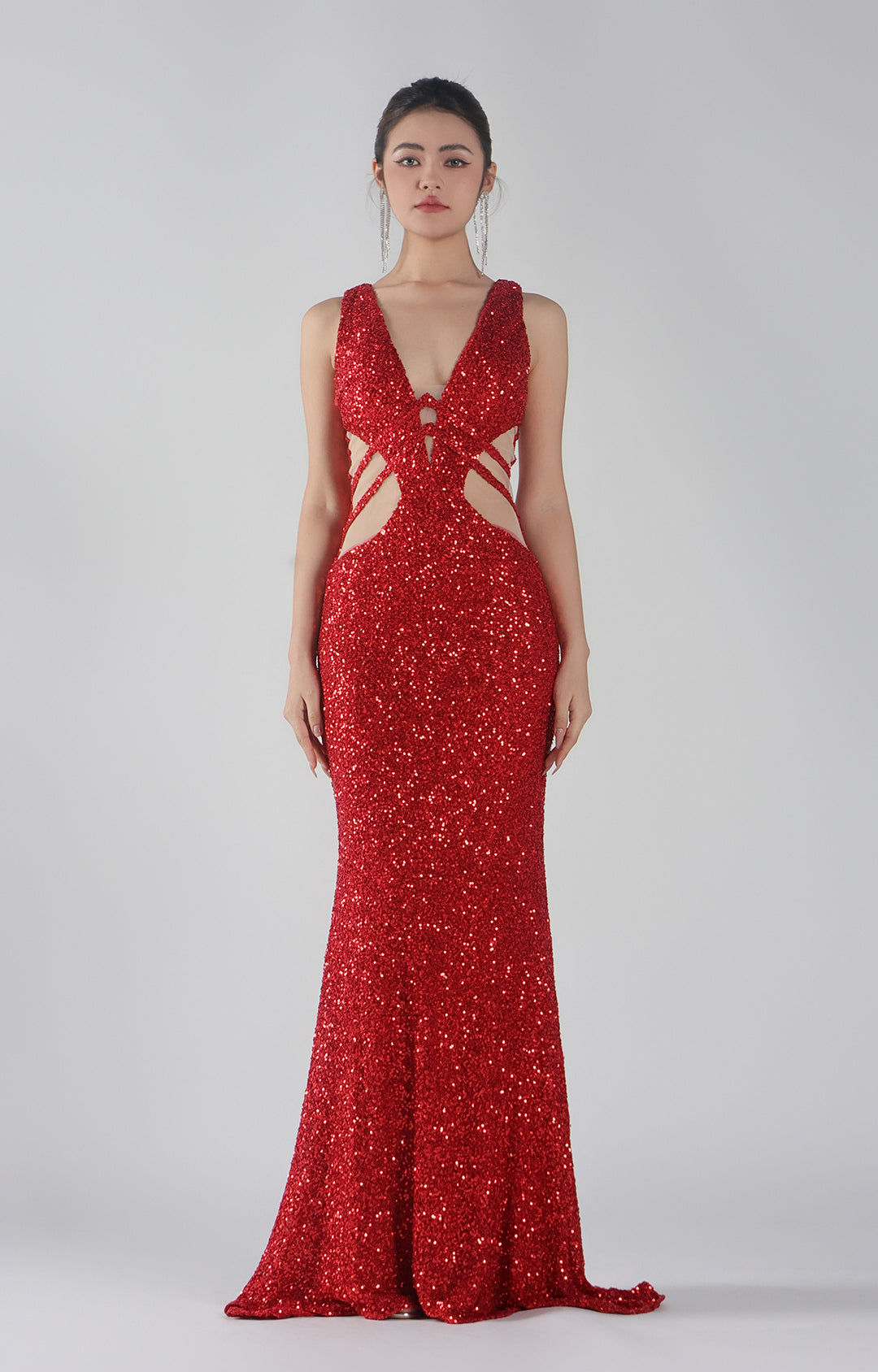 Deep V-Neck See-Through Cut-Outs Waist Mermaid Dress
