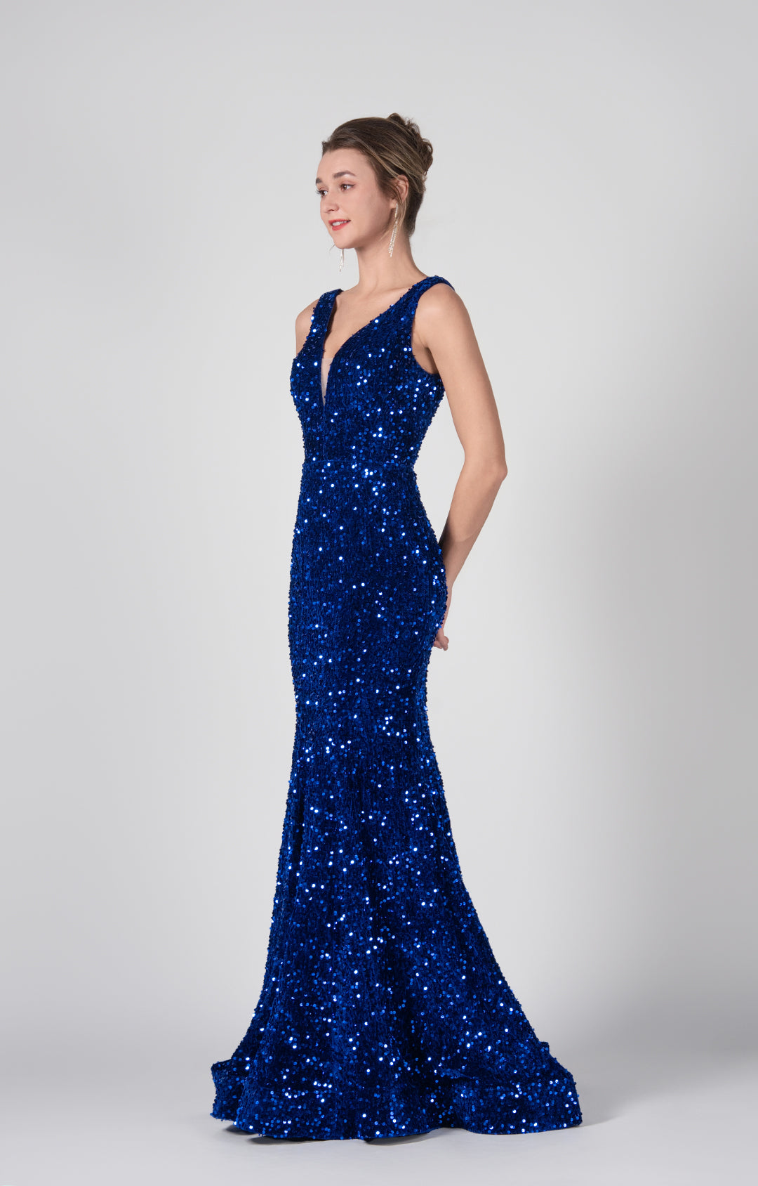 Deep V-Neck Sequin Wrap-Hip Mermaid Dresses