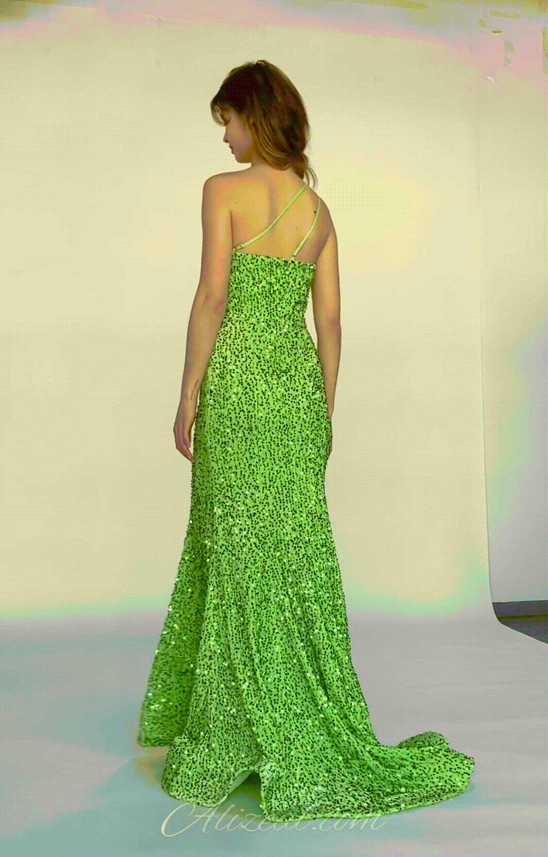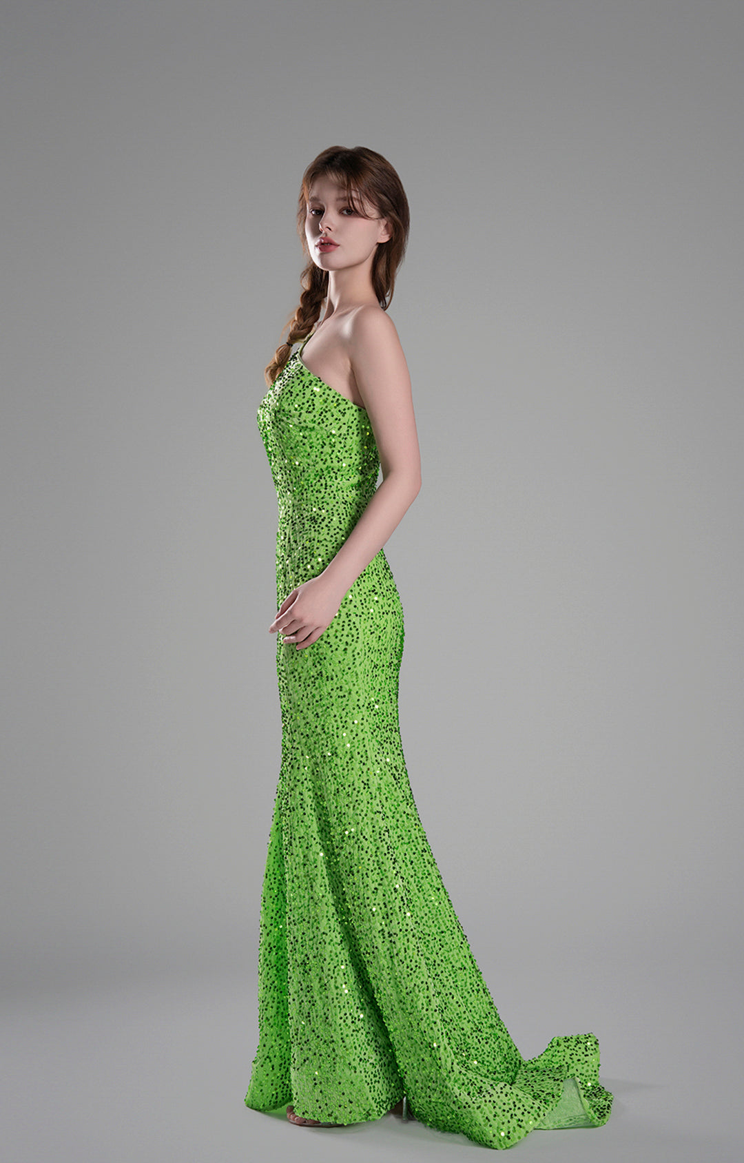 One-Shoulder Double Straps Sequins Mermaid Dresses