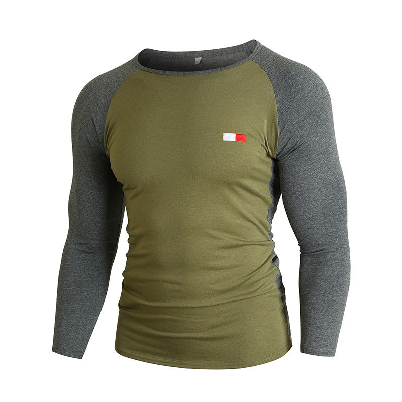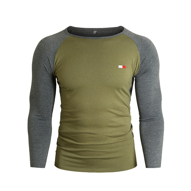 Men's Grey and Olive Green Stitch Long Sleeve T-shirt 214