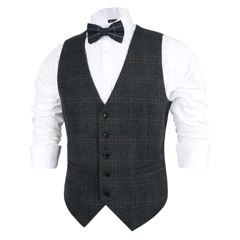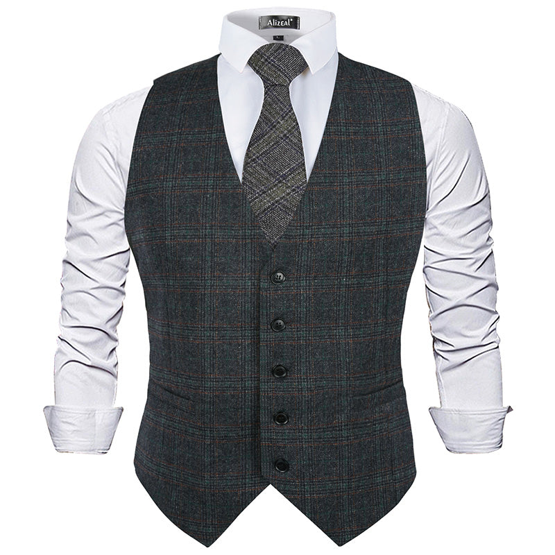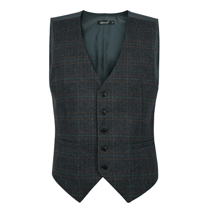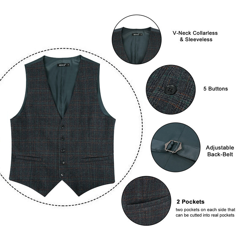 Mens Plaid Tweed Business Suit Vest Regular Fit Tuxedo Waistcoat, 193-Dark Teal