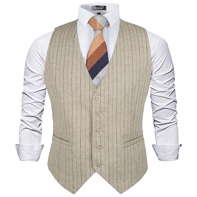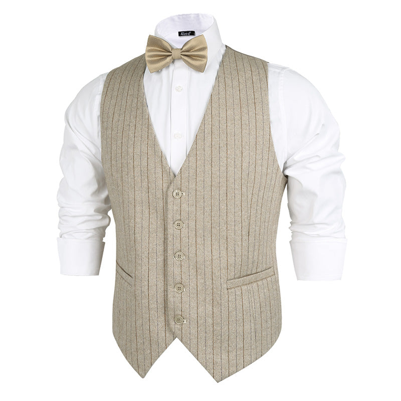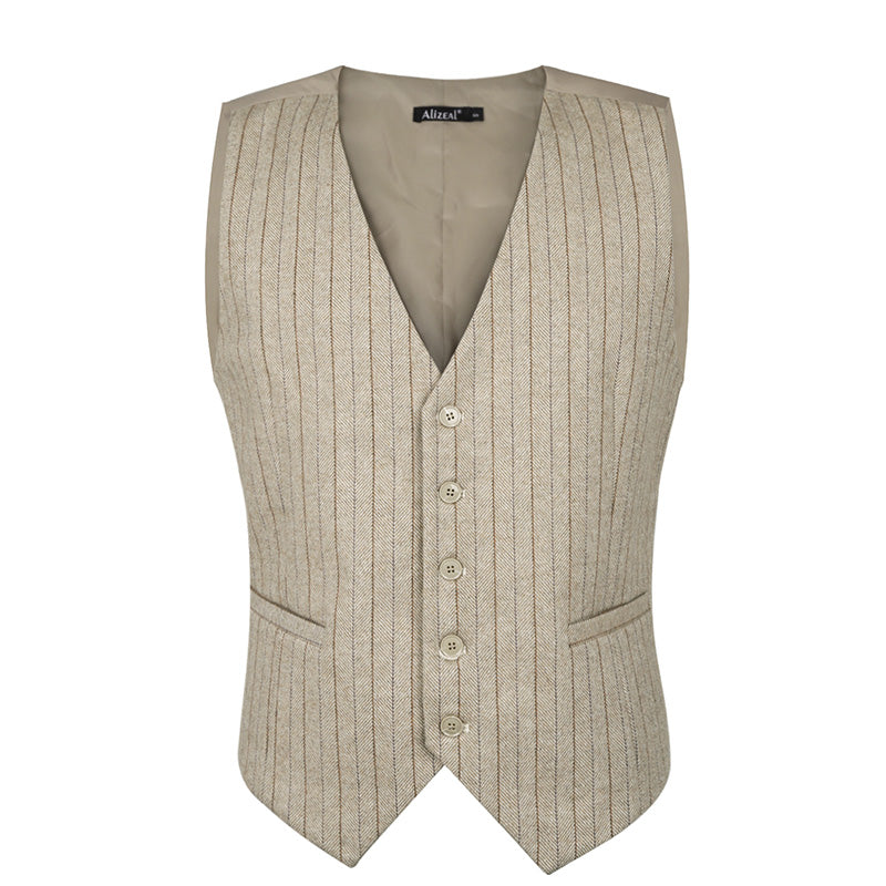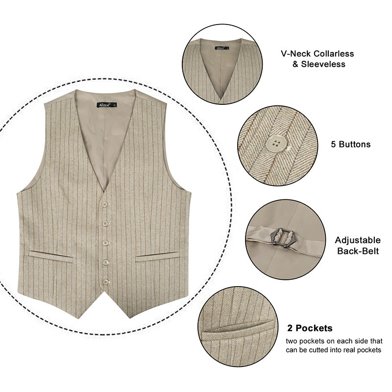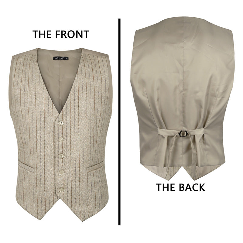 Mens Plaid Tweed Business Suit Vest Regular Fit Tuxedo Waistcoat, 193-Beige