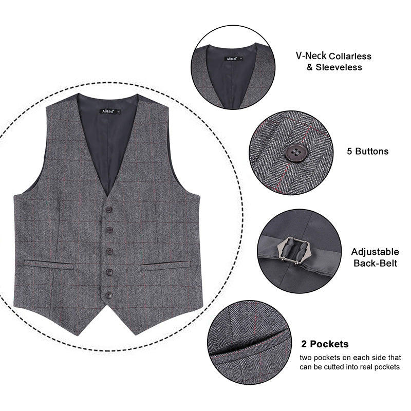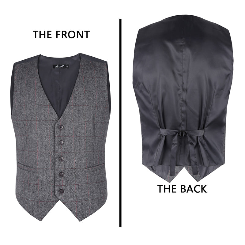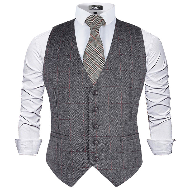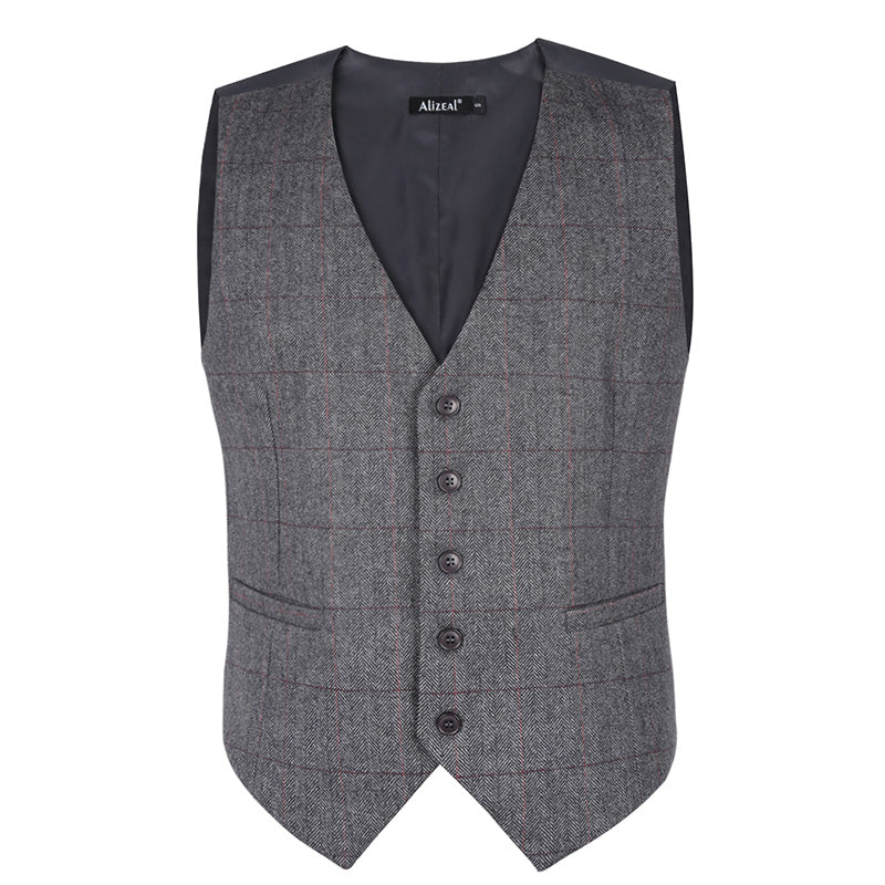 Mens Plaid Tweed Business Suit Vest Regular Fit Tuxedo Waistcoat, 193-Dark Gray