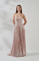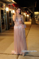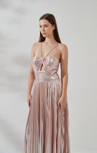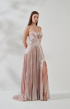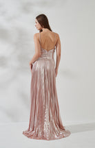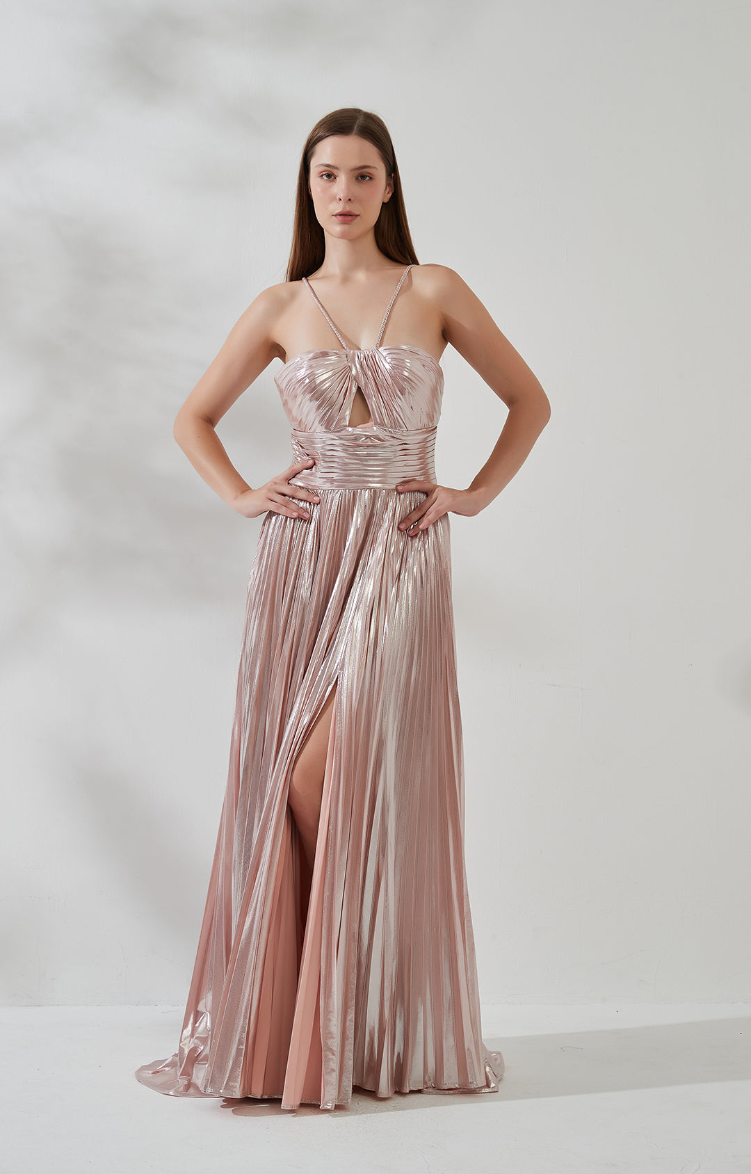 Spaghetti Strap Pearlescent Pleated Side Slit Evening Dress
