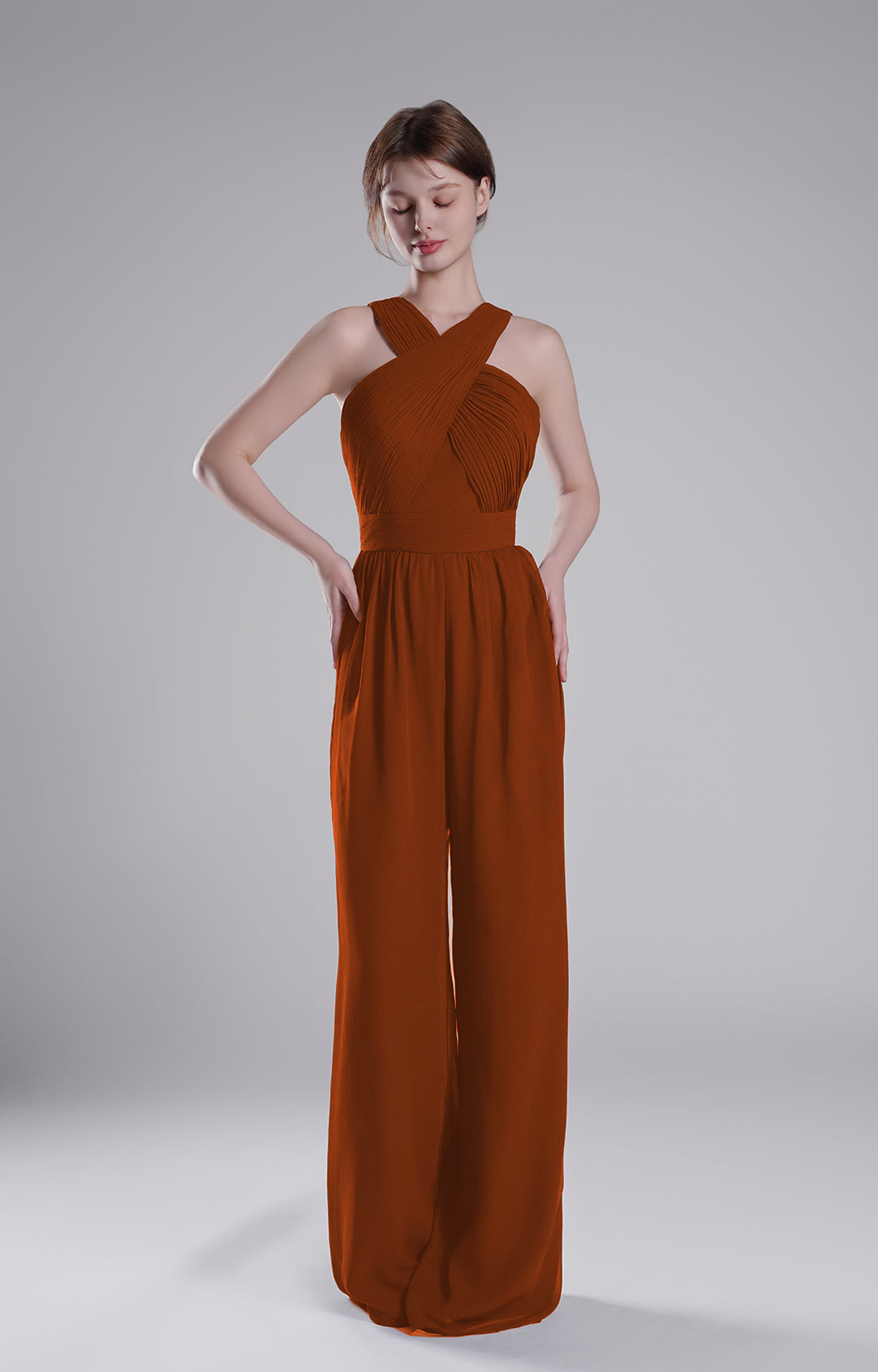 Crafted from premium chiffon fabric, this jumpsuit is lightweight, breathable, and soft to the touch. The fluid material offers an elegant drape, ensuring comfort and style in every movement.