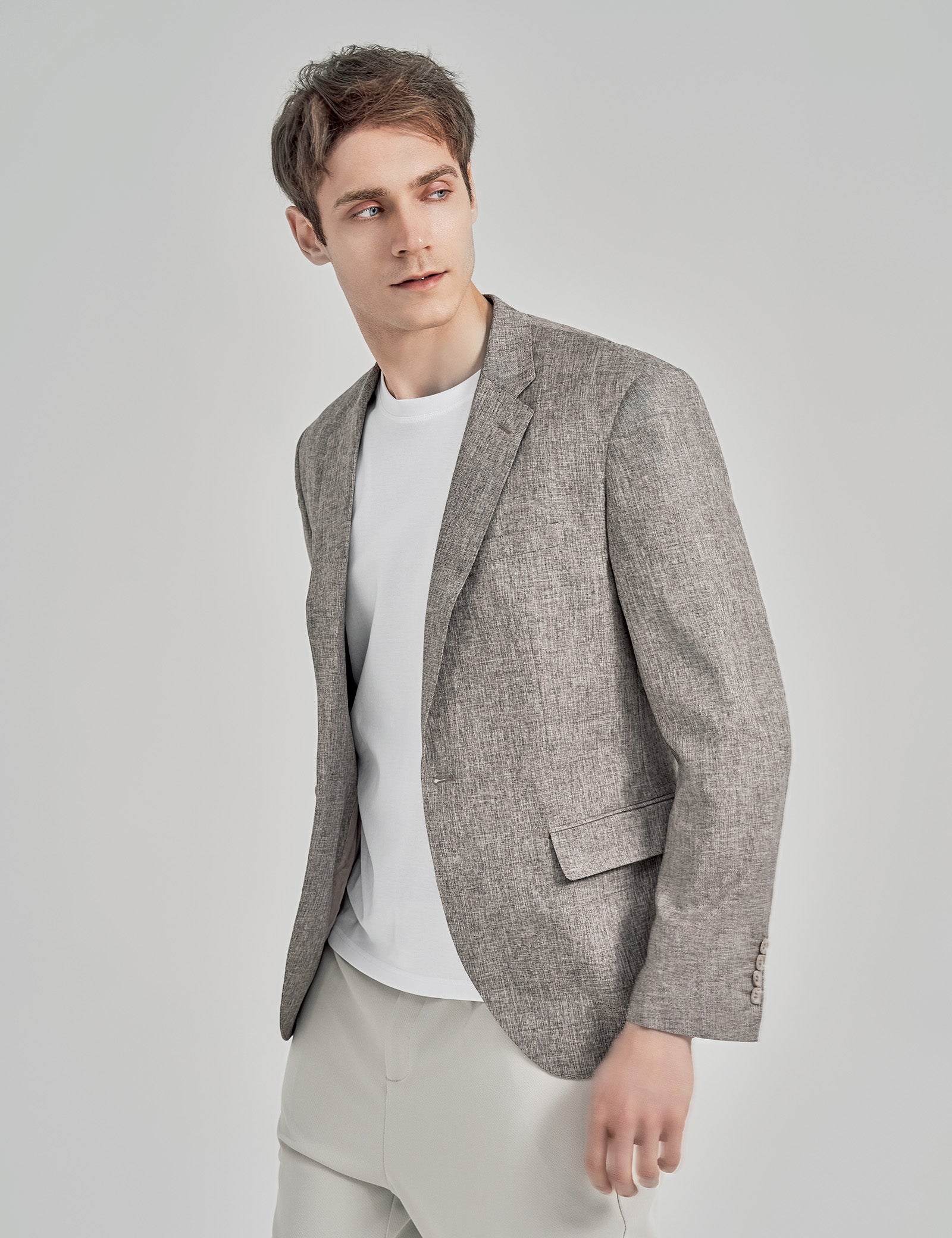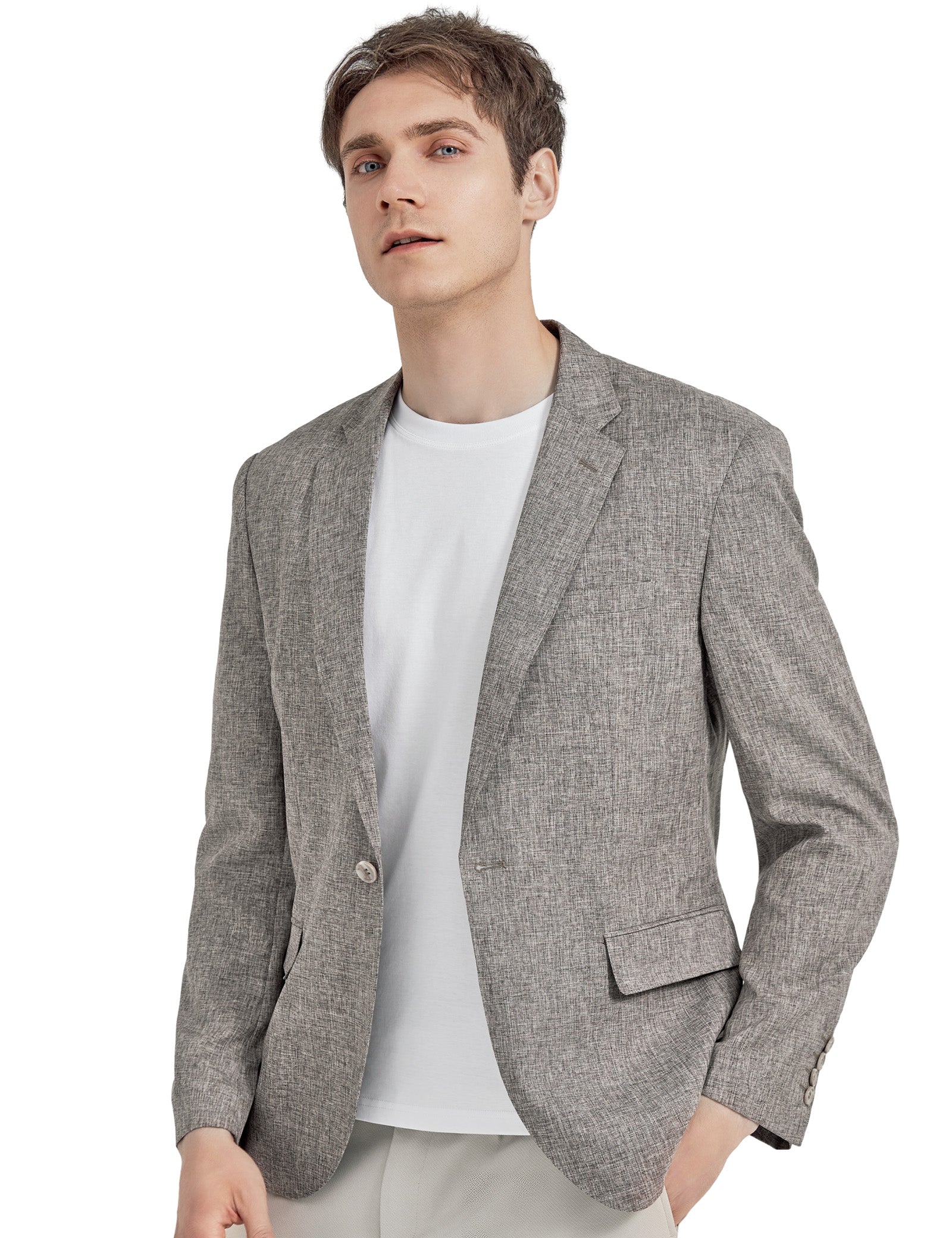 - DESIGN: High-end suit design----two tone fabric between the inner lining and the outer clothes, unique and flexible. Anti-sweat stickers under the armpits to keep dry all times. Fashion lightweight suit jacket blazer with notch lapel, one button closure, left chest real pocket, two front flap real pockets, inside two real pocket
