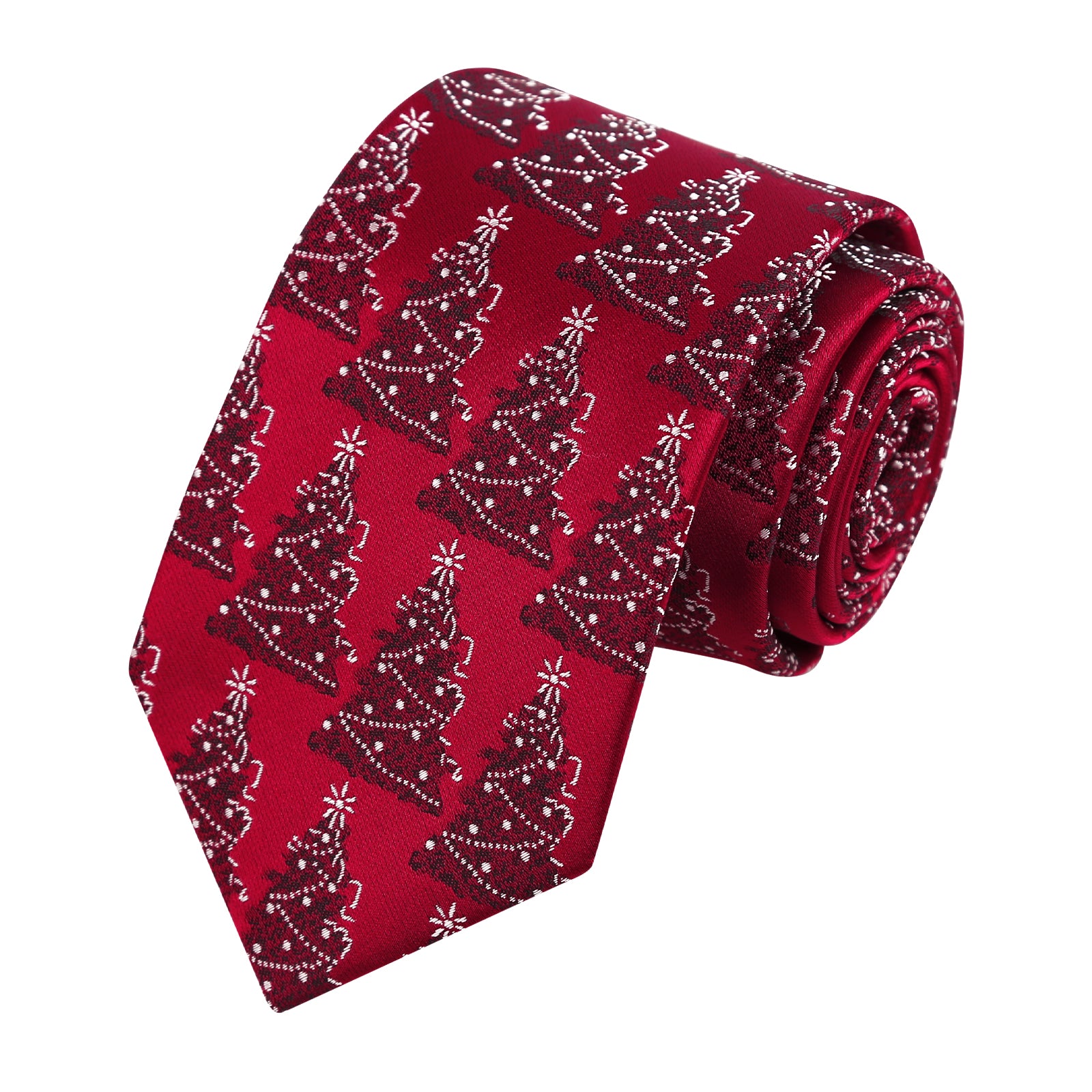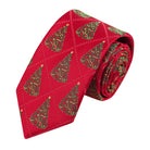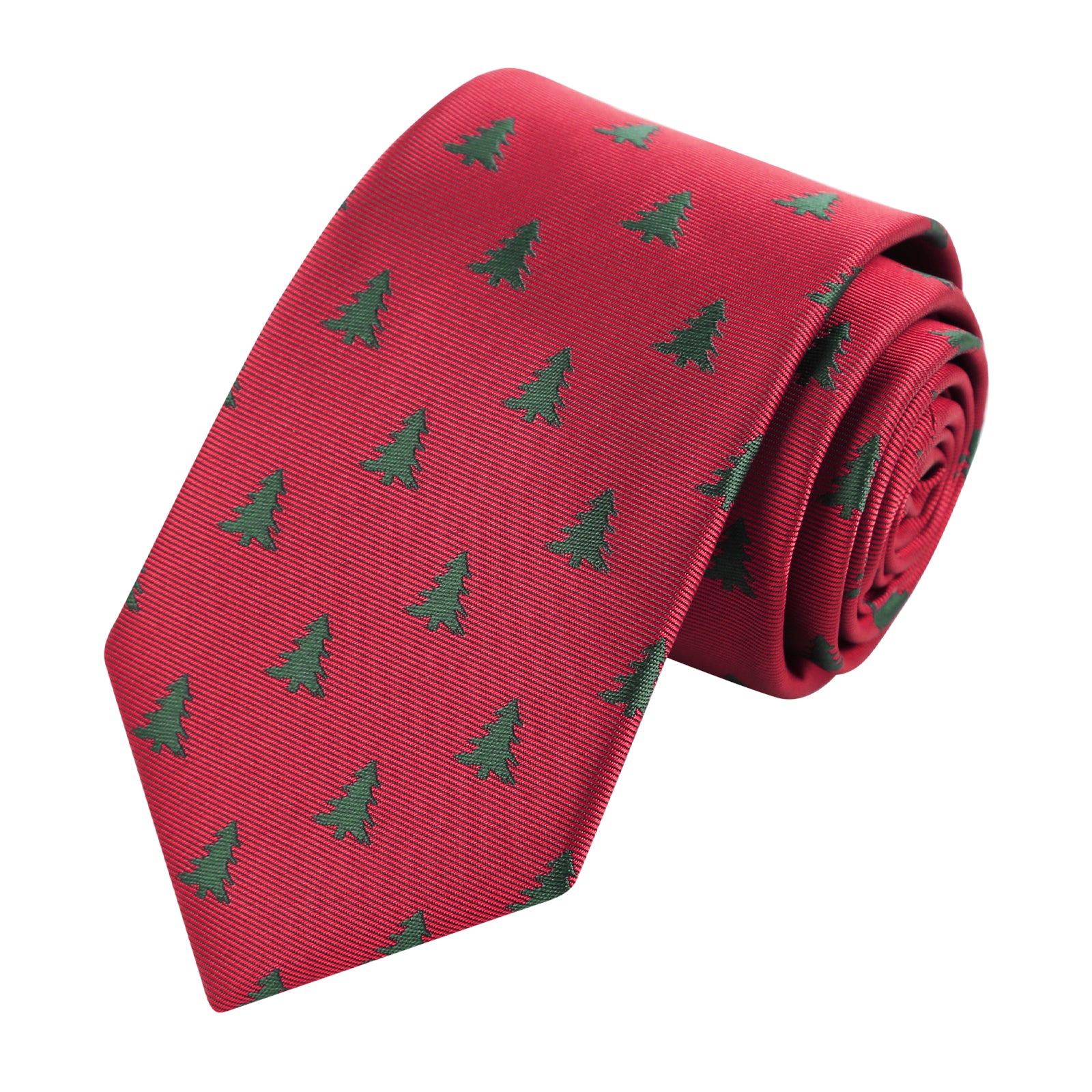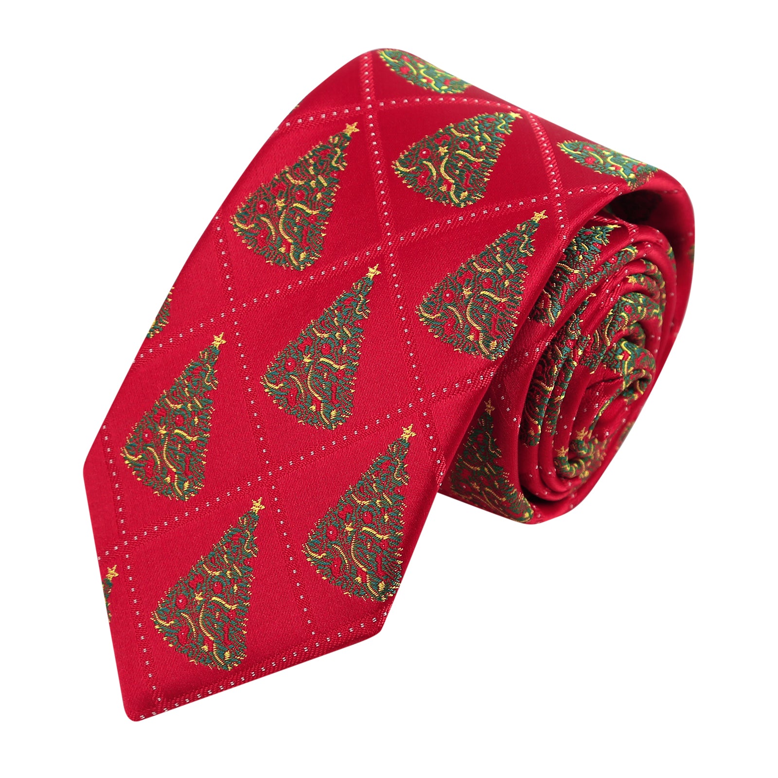 A classy Christmas necktie features the tiny woven Christmas tree on a red microfiber twill background, showing off your taste and joie de vivre at the same time.