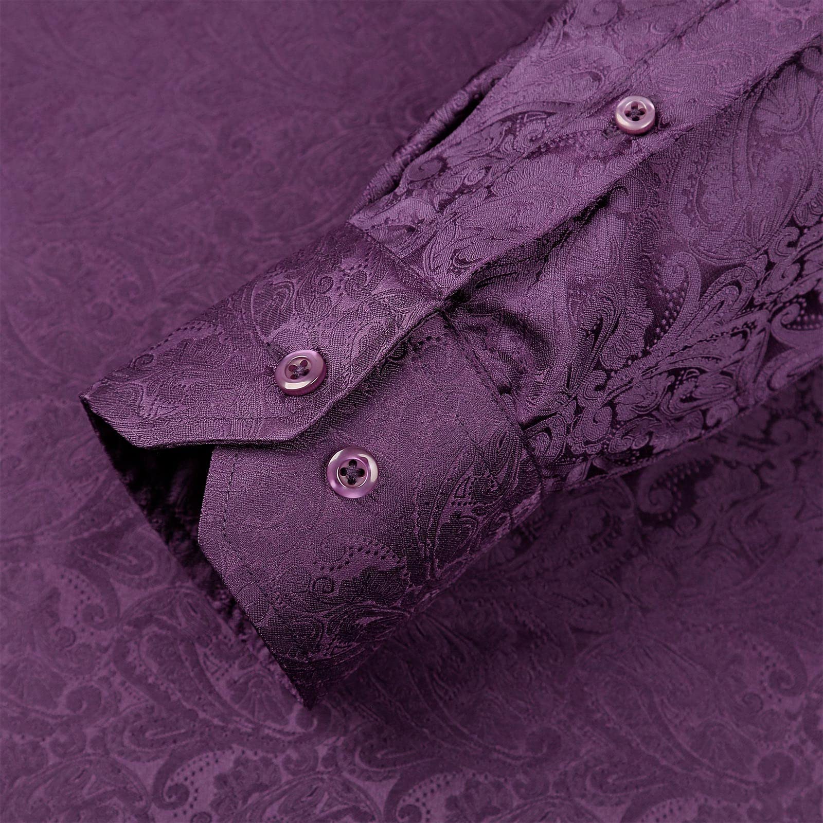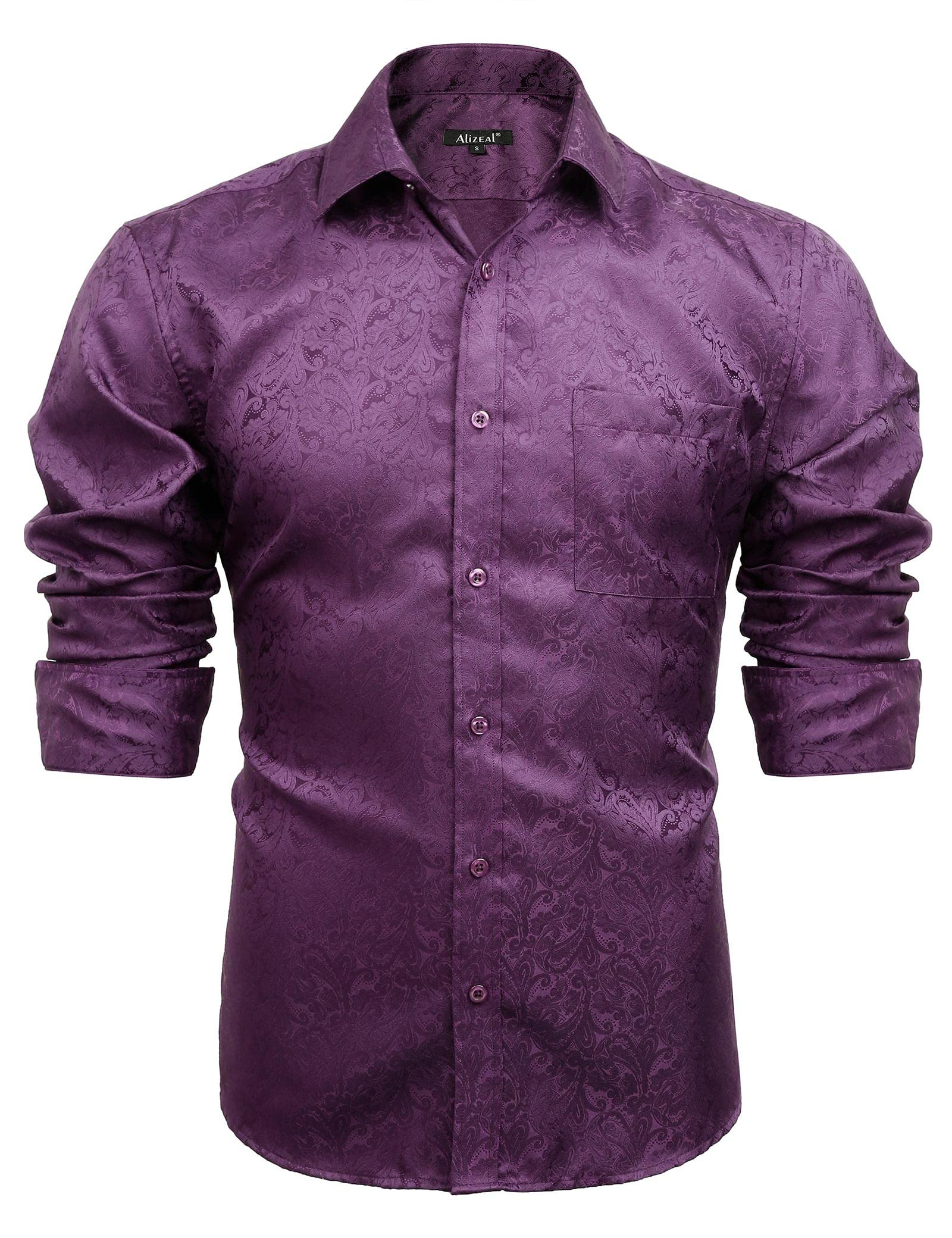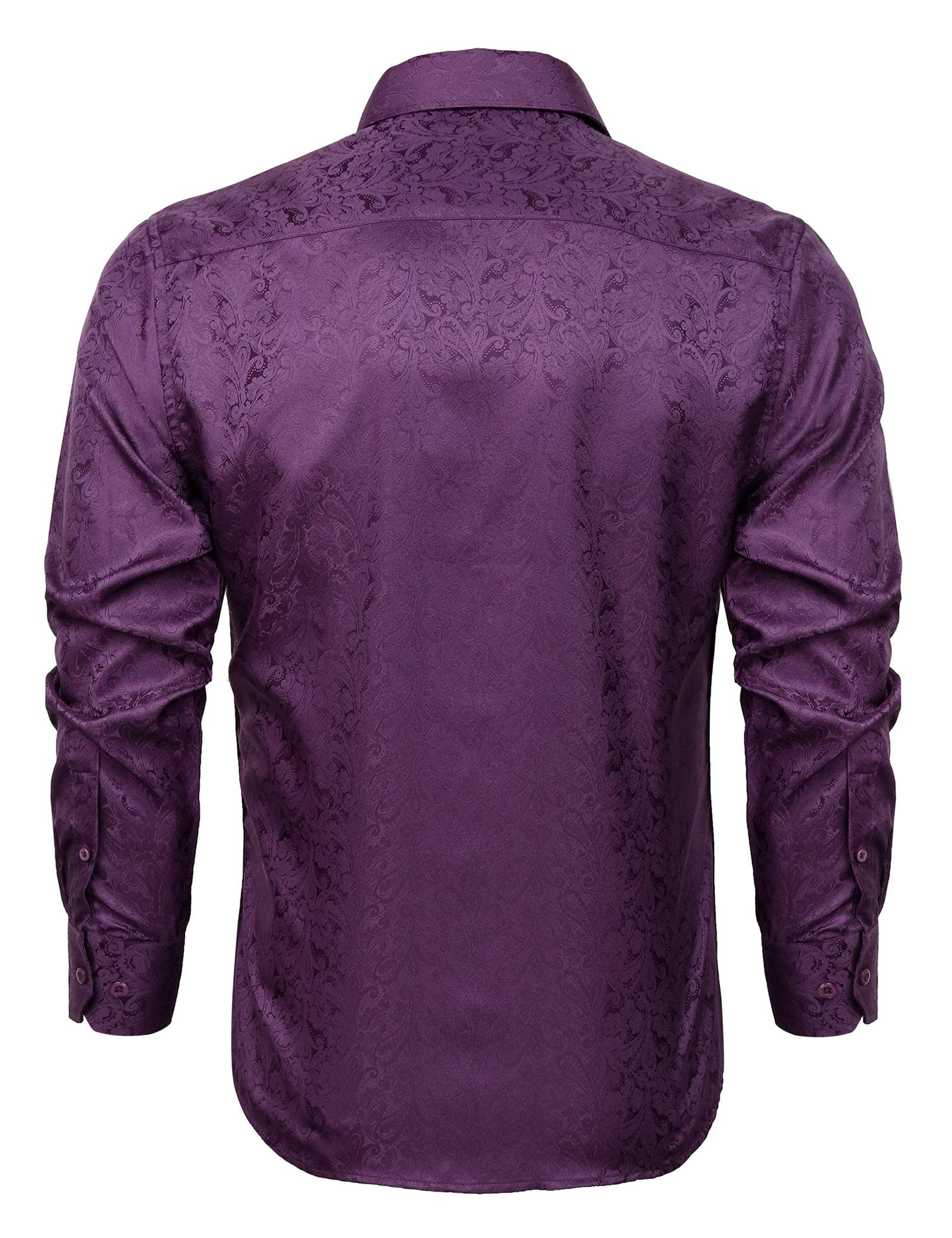 Men's Paisley Jacquard Dress Shirt Classic Slim Fit Button-Down Long Sleeve Shirt, 113-Plum Purple