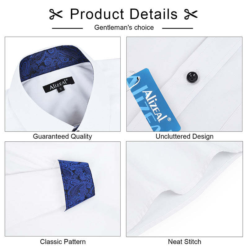 Men's Business Slim Fit Dress Shirt Long Sleeve Patchwork Button-Down Shirt, 004-White+Royal Blue