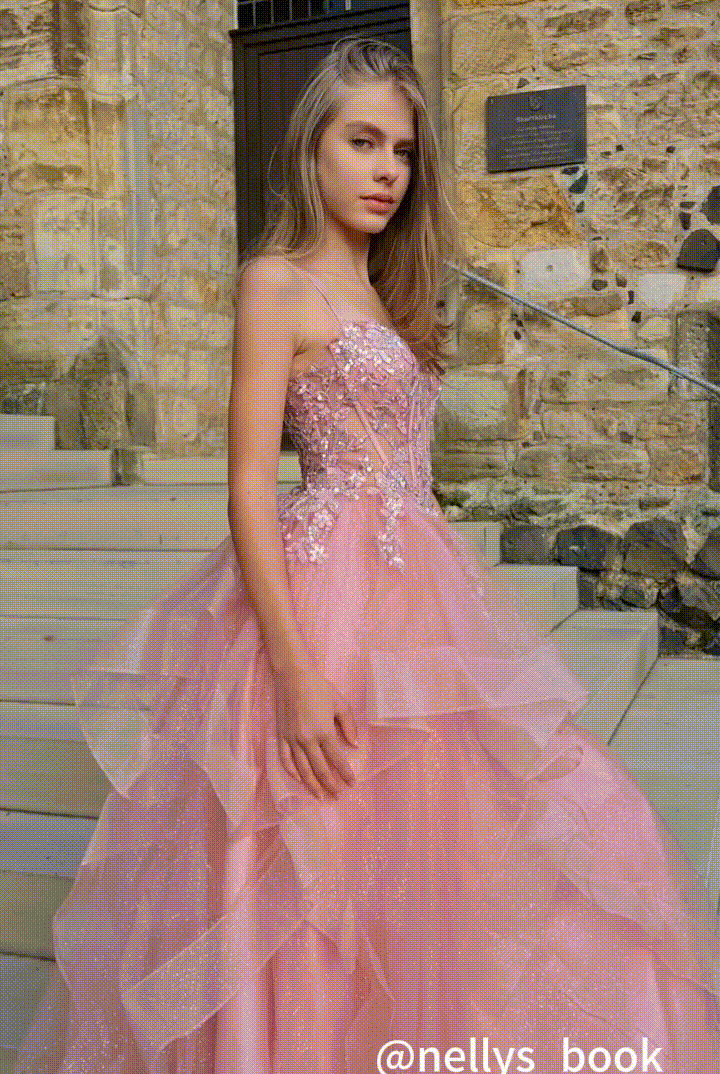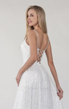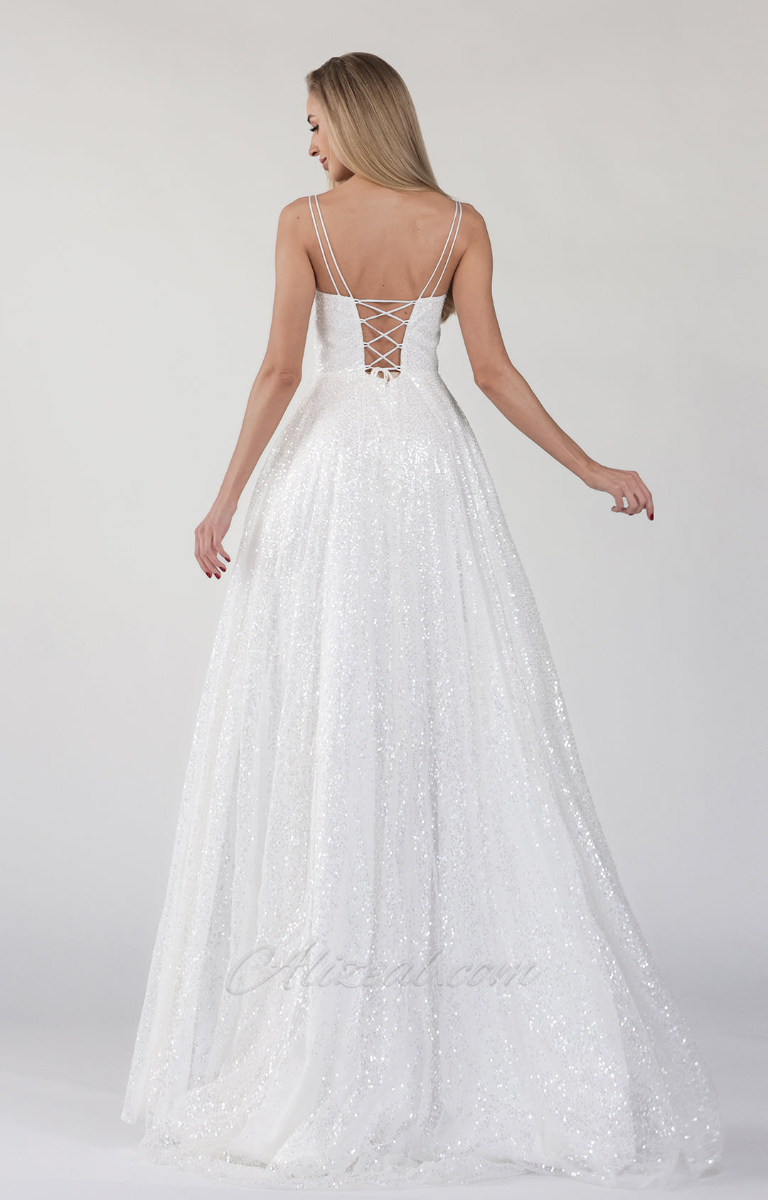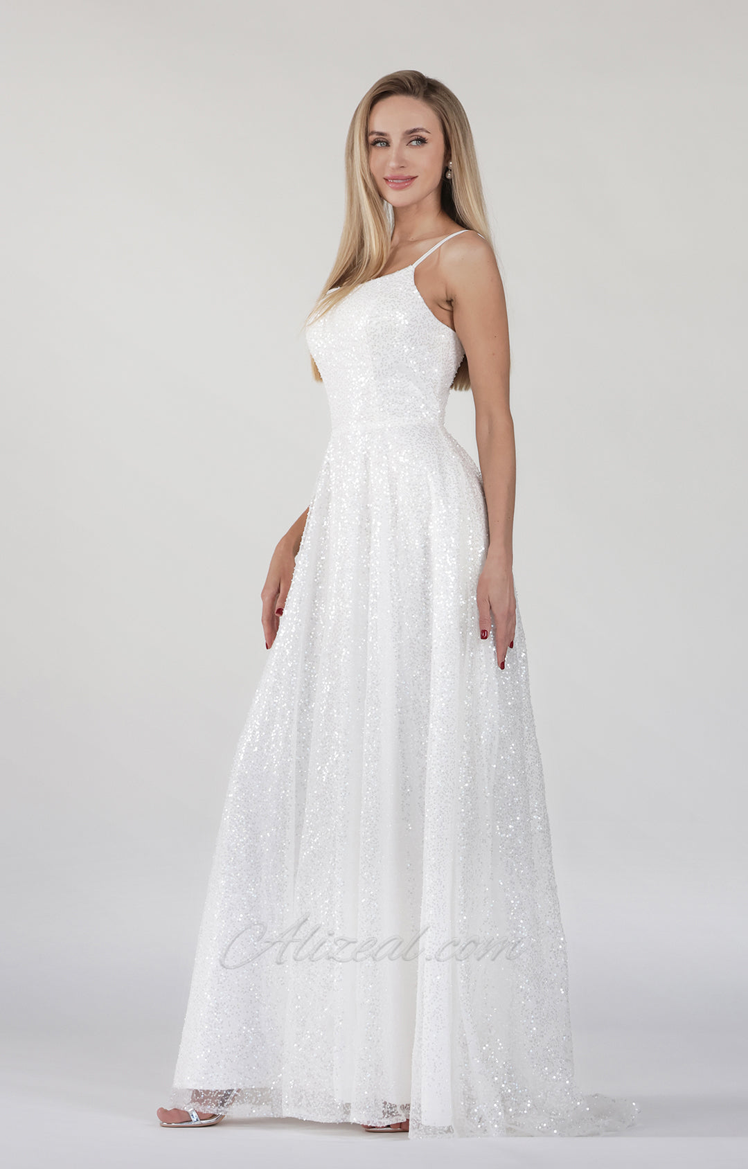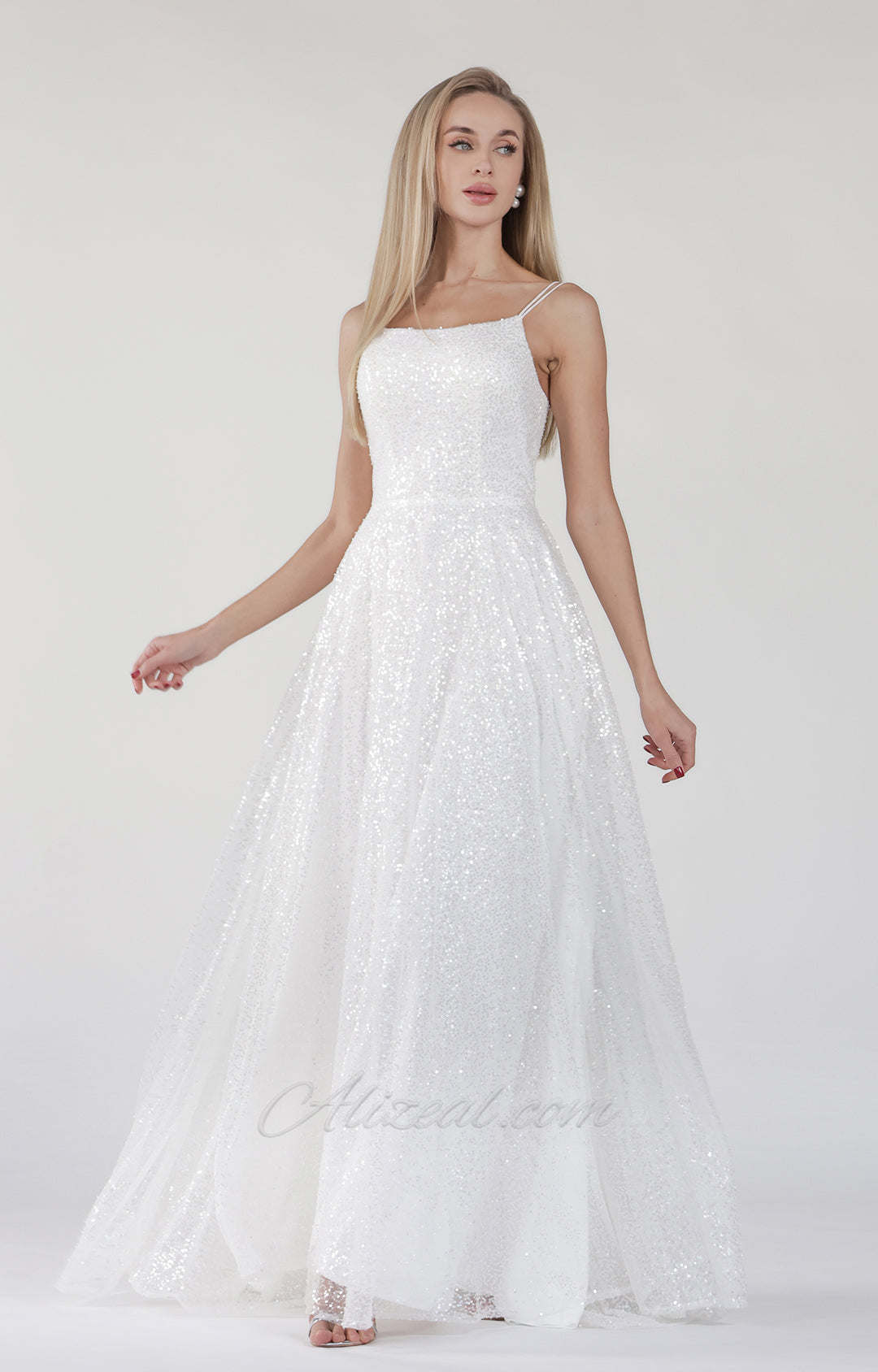 This dress is made of white mesh glitter fabric, showing a dazzling luster.
