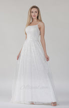 Square Collar A-Line Double Spaghetti Straps Lace-up Maxi Dress