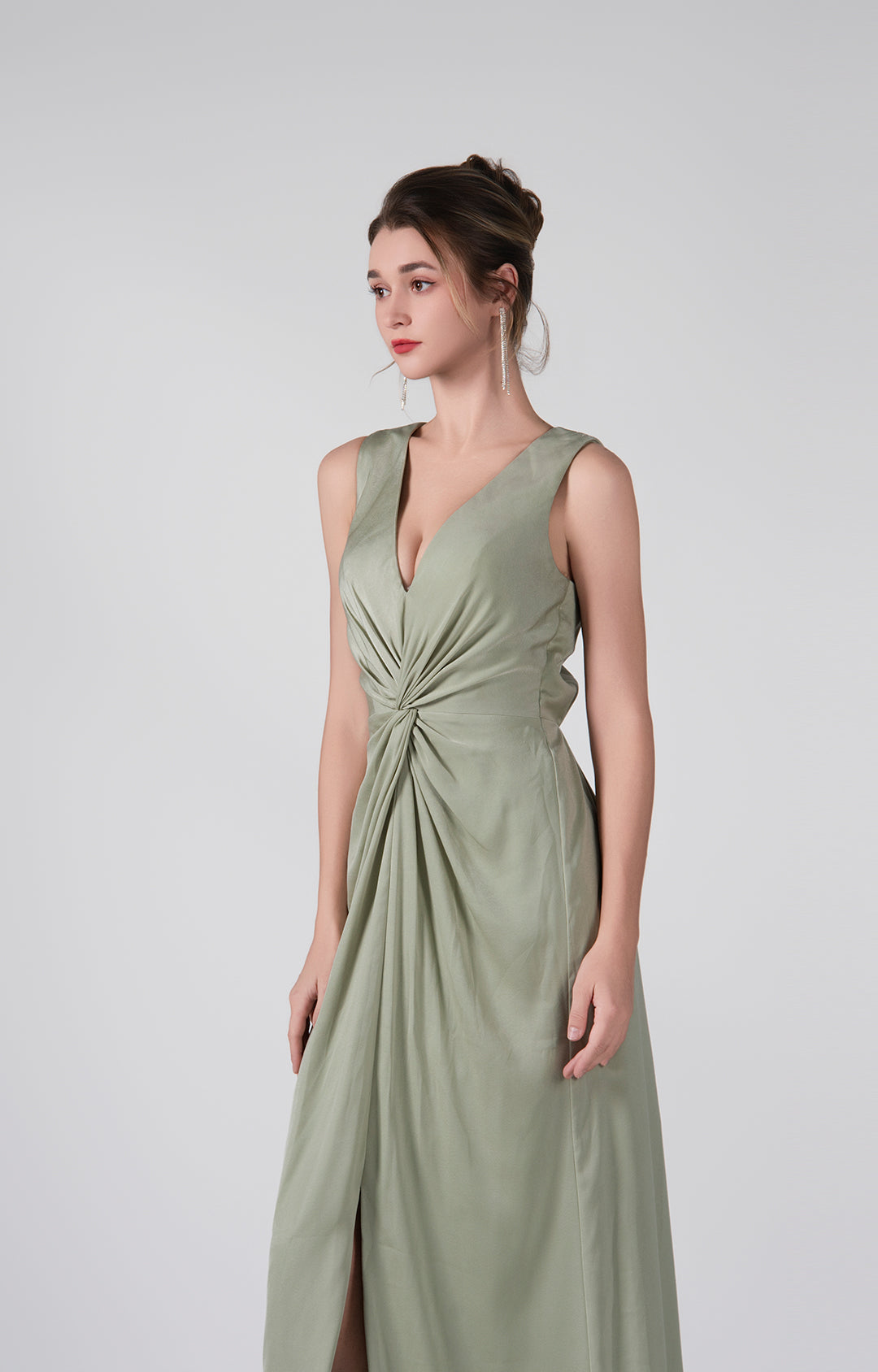 Twisted Detail Sleeveless Front Split A-Line Dresses